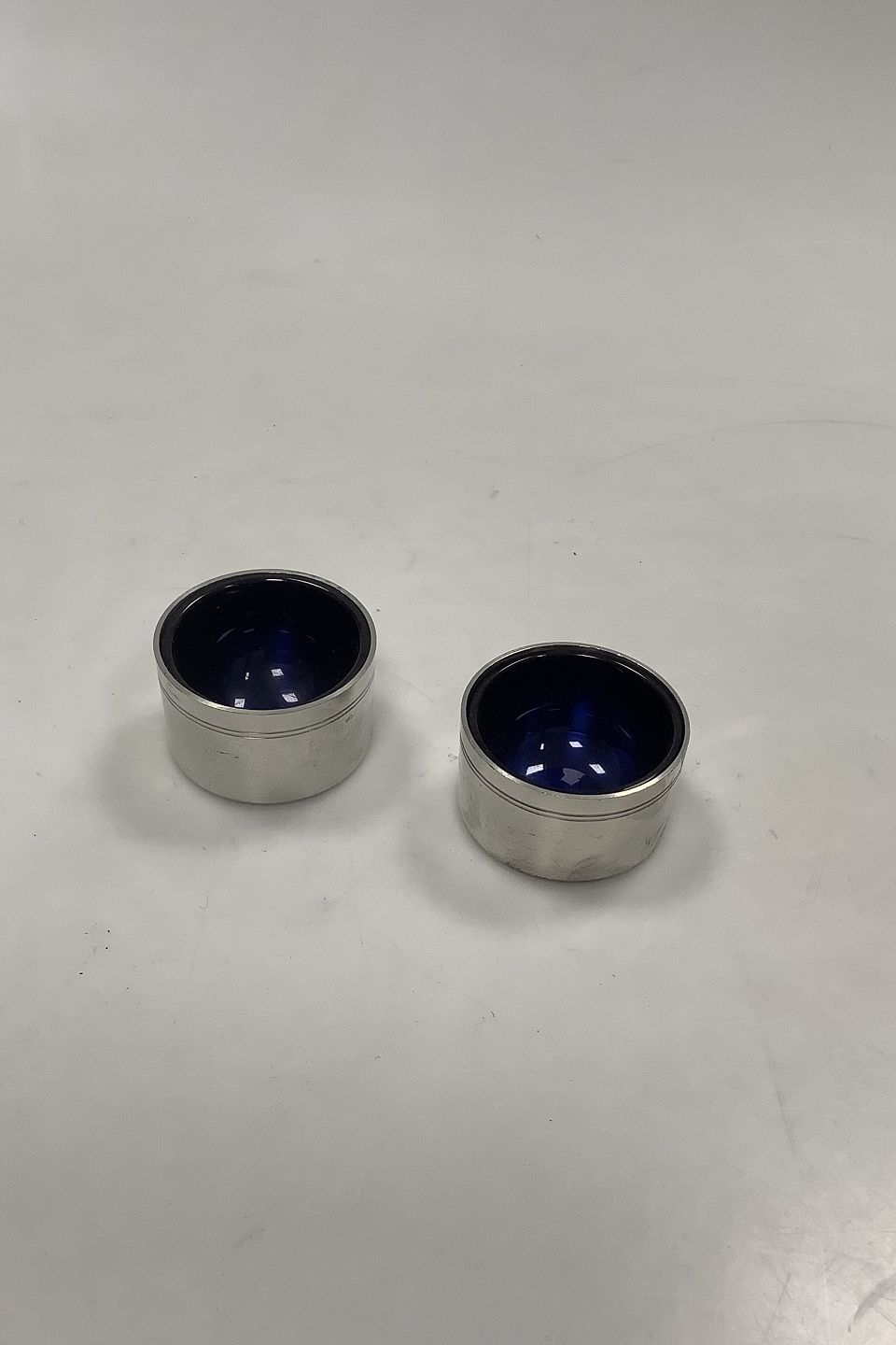 Pair of Just Andersen Pewter Salt Dishes with blue Incerts