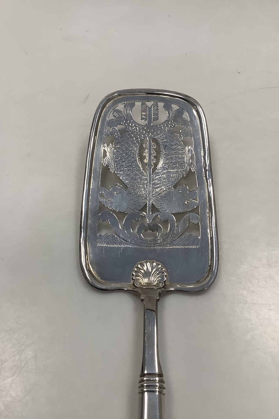 Danish Silver Large Fish Server in Mussel pattern from Lamotte in 1895