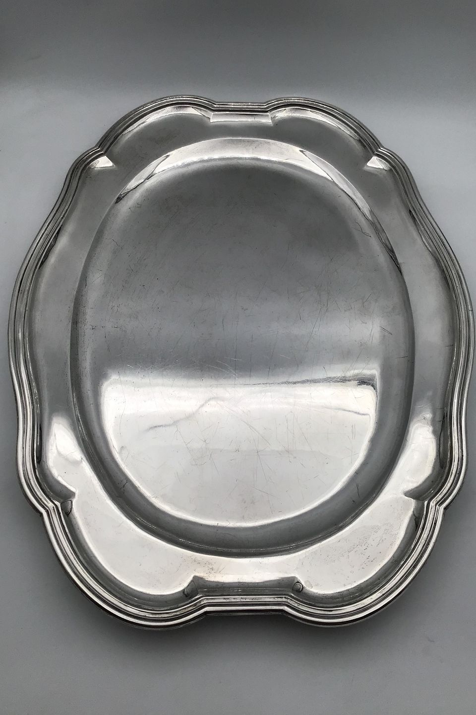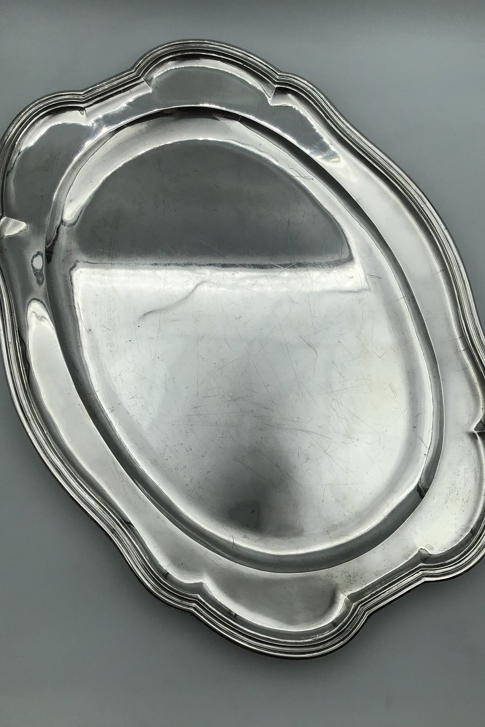 Michelsen Sølv Serveringsfad (1912) Måler 51 cm x 37.8 cm (20.07 inch x 14.88 inch) Vægt 2308 gr (81.41 oz) (Brugsspor)