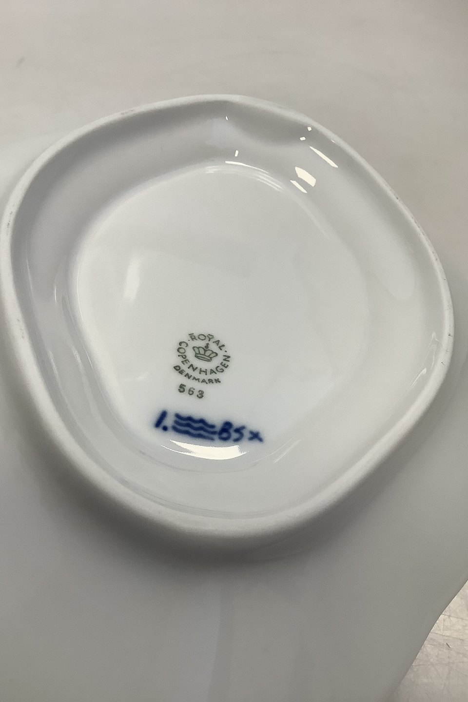 Royal Copenhagen Blue Fluted Plain Sauce Boat No. 263 / 204 attached to saucer.