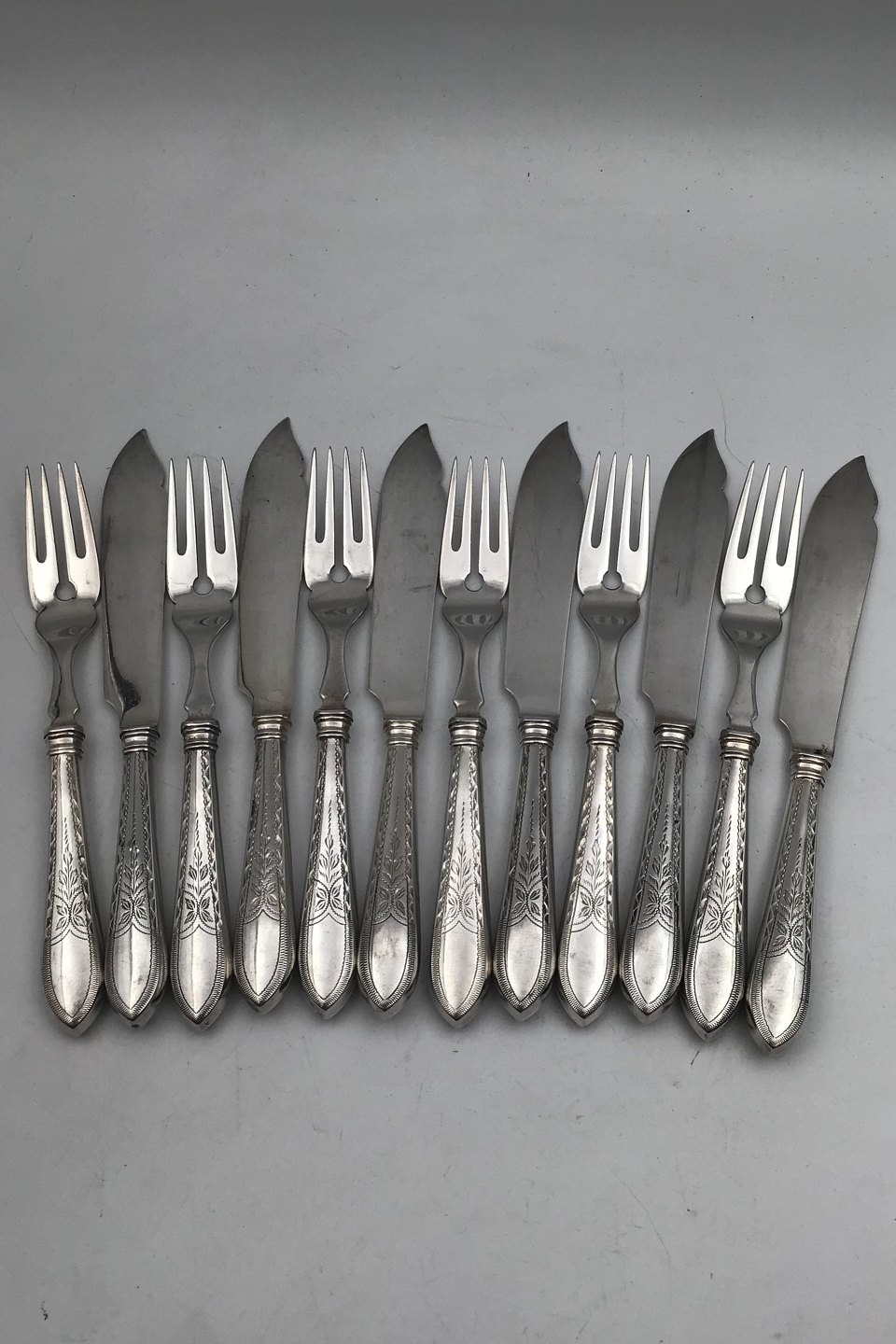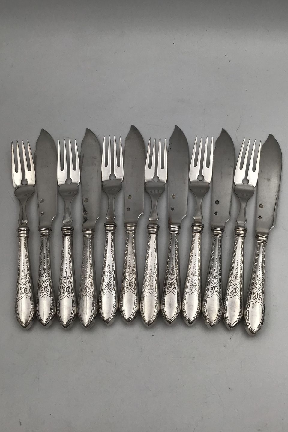 Dansk Empire Sølv Fiskebestiksæt (12) Måler Gaffel 19 cm (7.48 inch) Kniv 21 cm (8.26 inch) (helsølv)