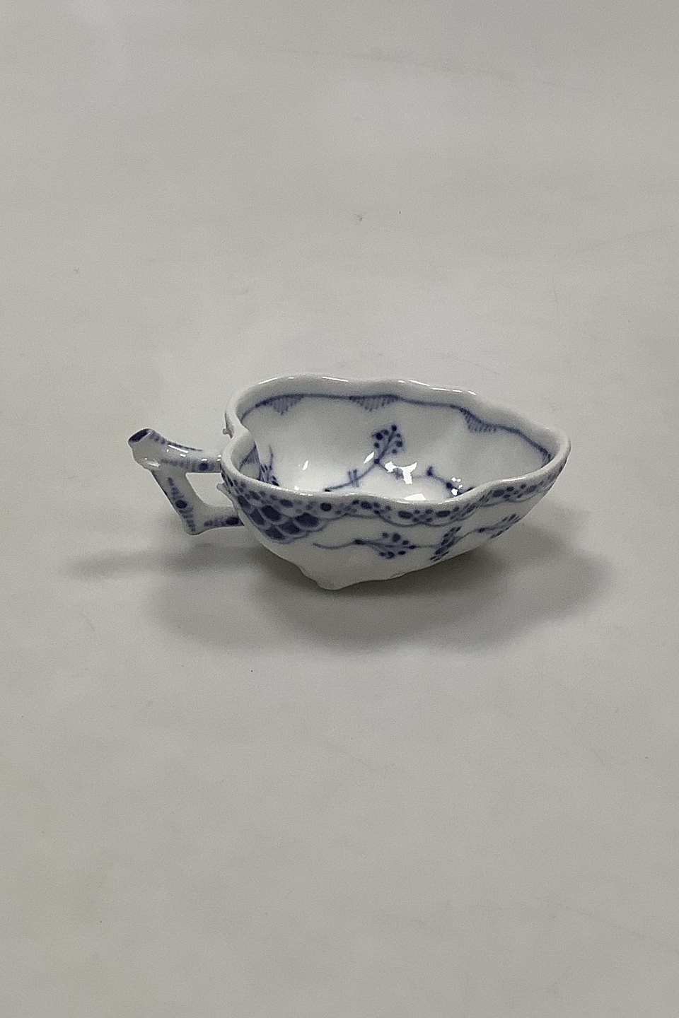Royal Copenhagen Blue Fluted Half Lace Small Leaf-shaped dish No 553. Måler 10 cm / 3 15/16 in. Handle broken