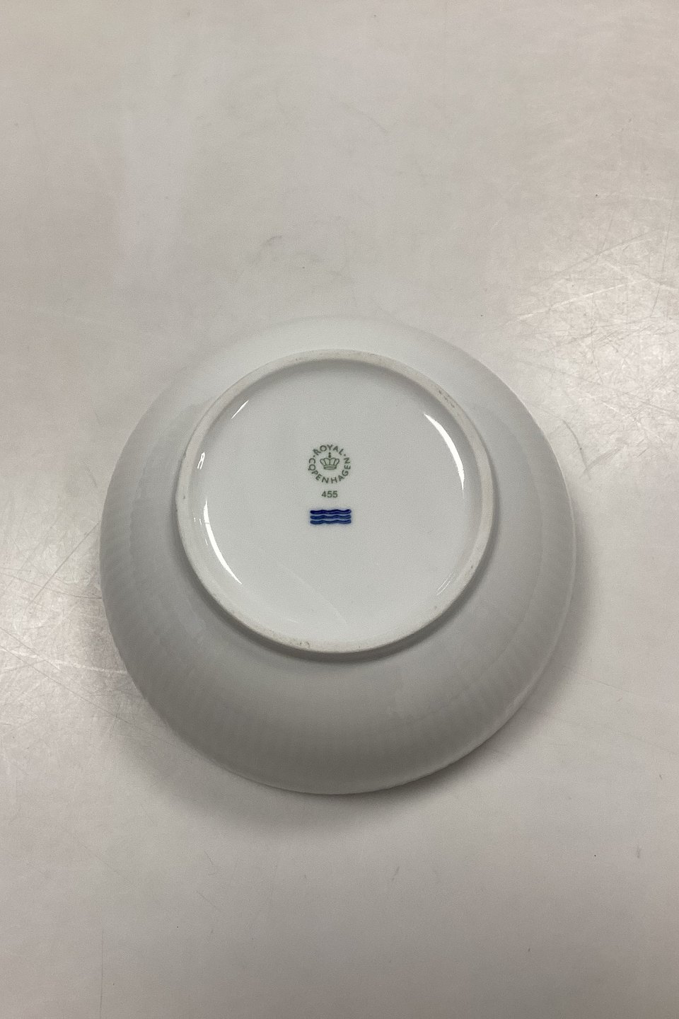 Royal Copenhagen Hvid Riflet Skål No. 455. Måler 7 cm x 15 cm / 2.75 in. x 5.90 in.