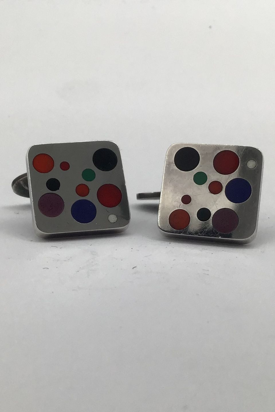 Georg Jensen Sterling Sølv / Emalje Manchetknapper No. 93A Magnus Stephensen Måler 1.8 cm x 1.8 cm (0.70 inch x 0.70 inch) Samlet vægt 21.7 gr. (0.77 oz)