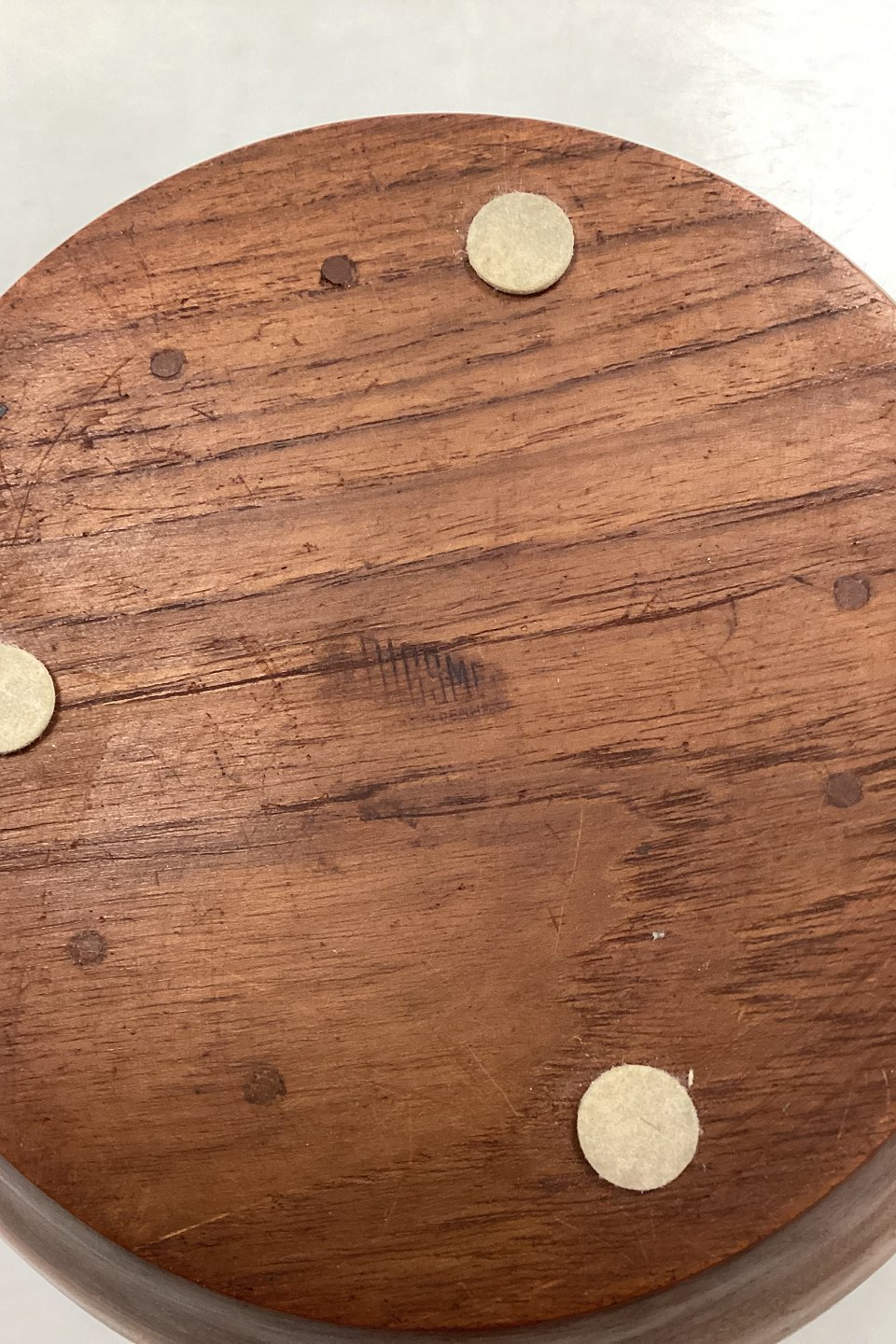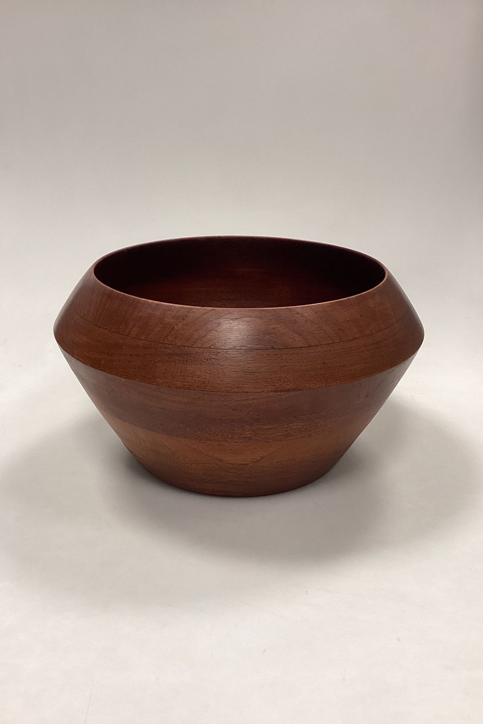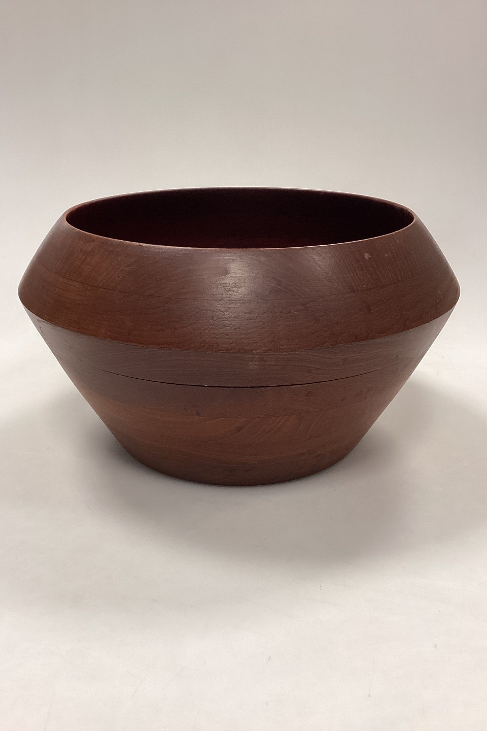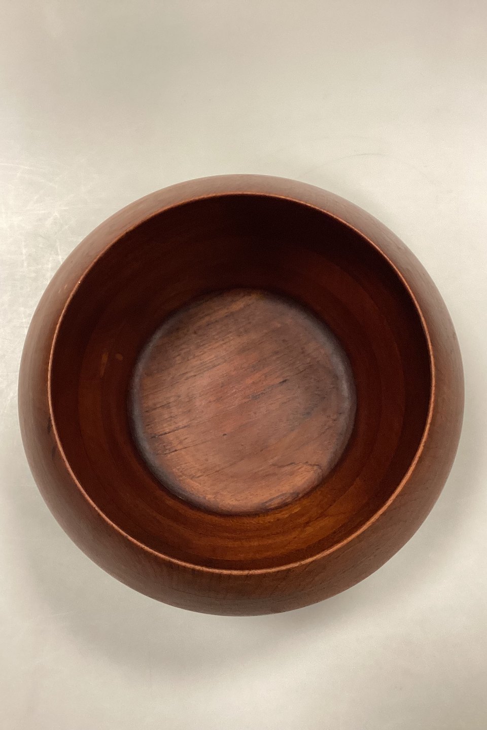 Digsmed Skål i Teaktræ. Lettere slidt og med mærker. To ringe er sprukket lidt i limningen. Se fotos.