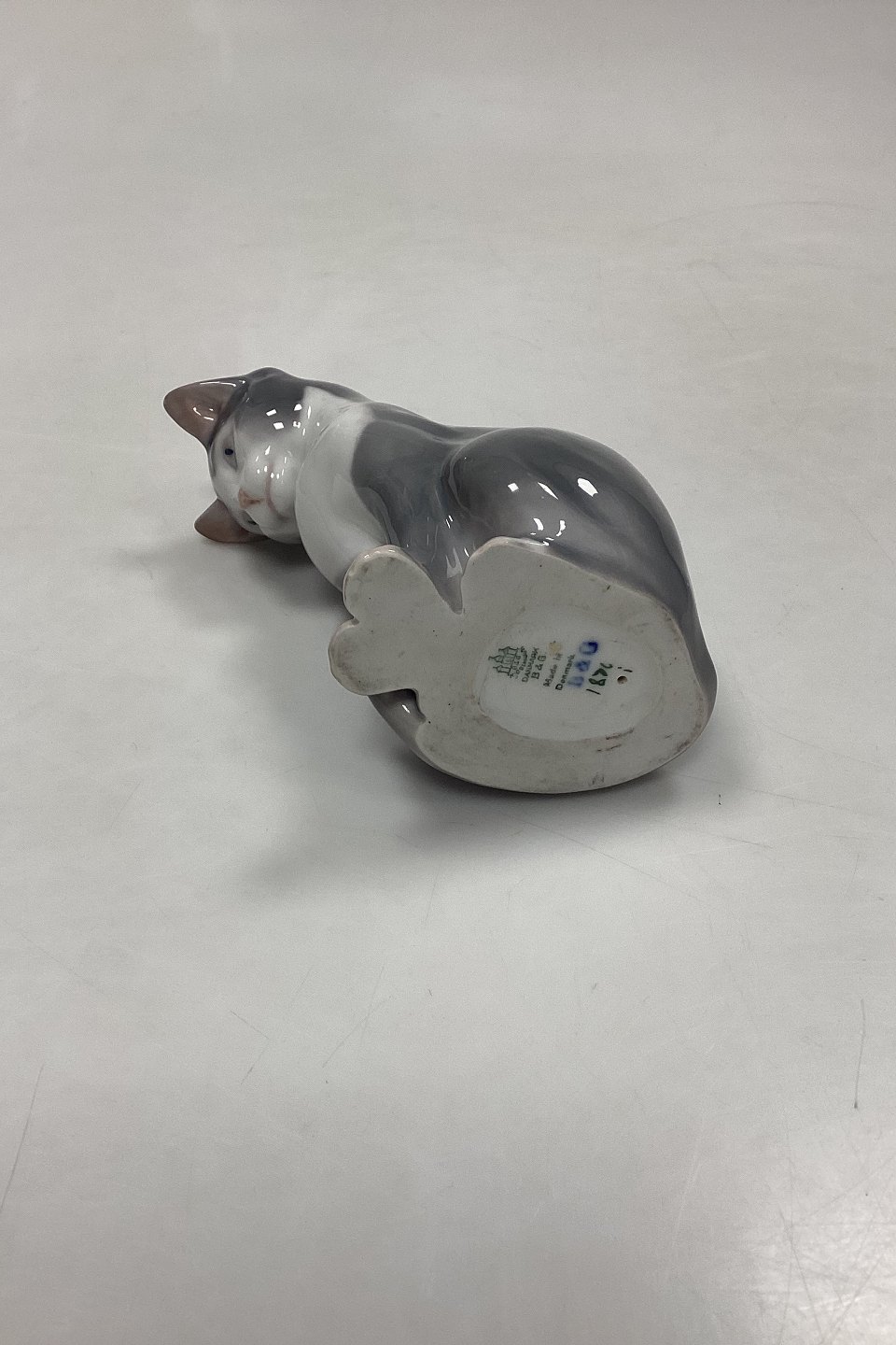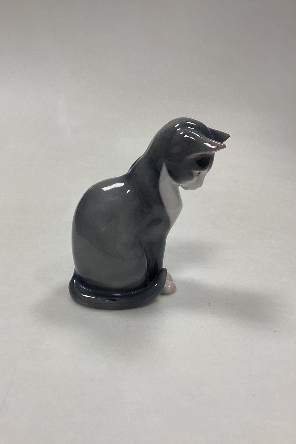 Bing og Grøndahl Figur Siddende Kat No. 1876. Designet af Ingeborg Plockross Irminger. 2. Sortering med lille mærke på ryggen.