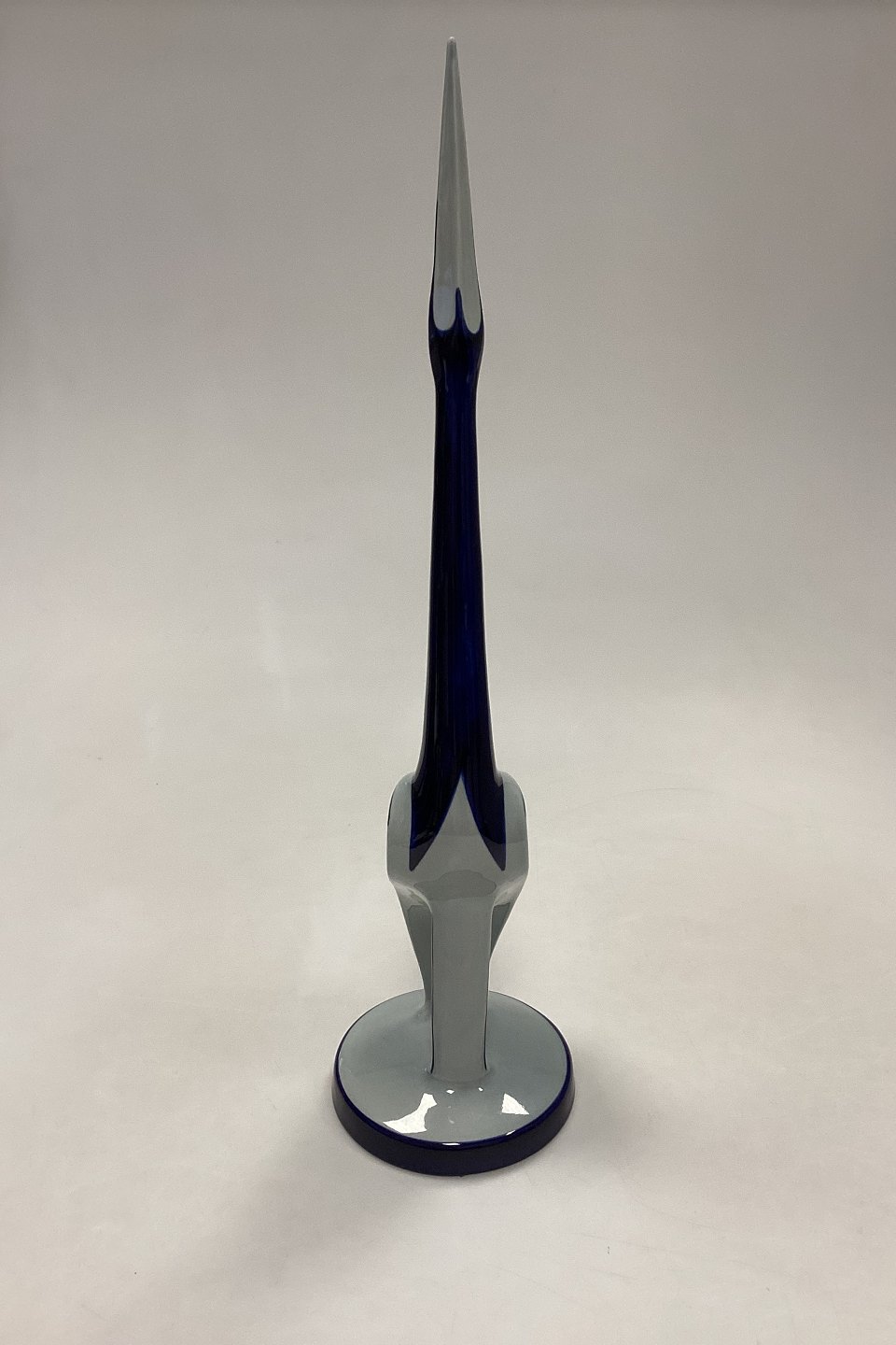 Søholm Keramik Figur - Blå/Hvid Trane. Håndmalet, formodentlig unika eksemplar. Måler 41 cm / 16.15 in.