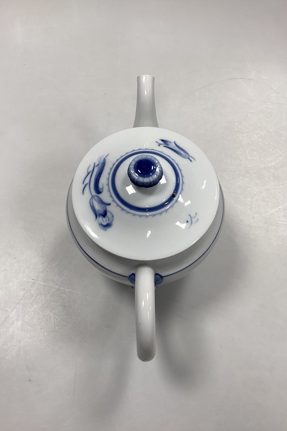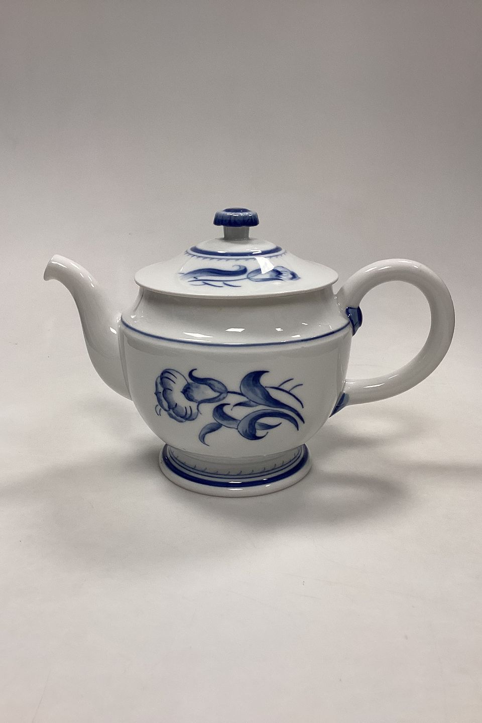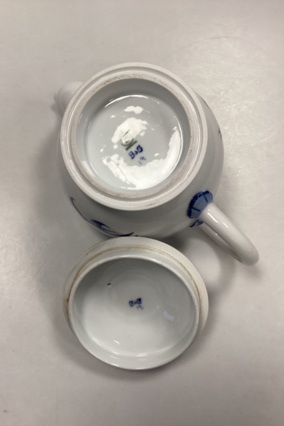 Bing og Grøndahl Jubilæumsstel / Blå Nellike Tekande. Måler 19 cm H x 28 cm fra tud til hank / 7.49 in H x 11.03 in.