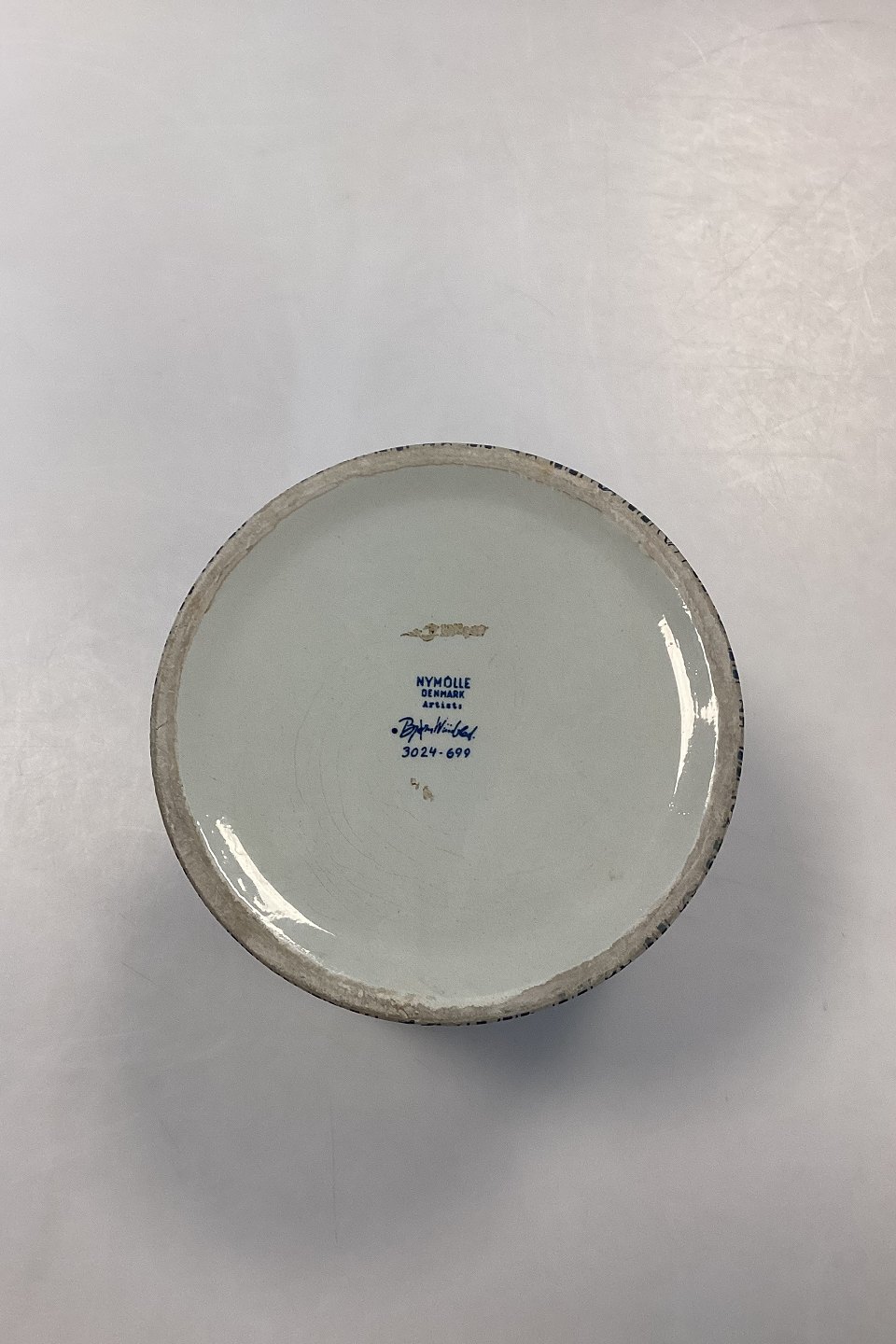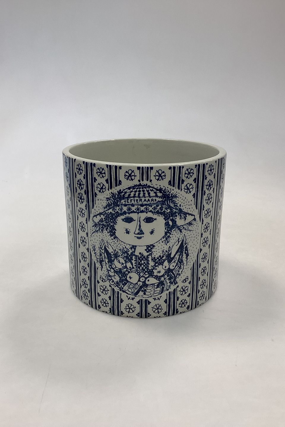 Bjørn Wiinblad Nymølle Flower Pot - Autumn No. 3024-699. Blue decoration. Measures 13 cm x 14.5 cm / 5.12 in. x 5.71 in.