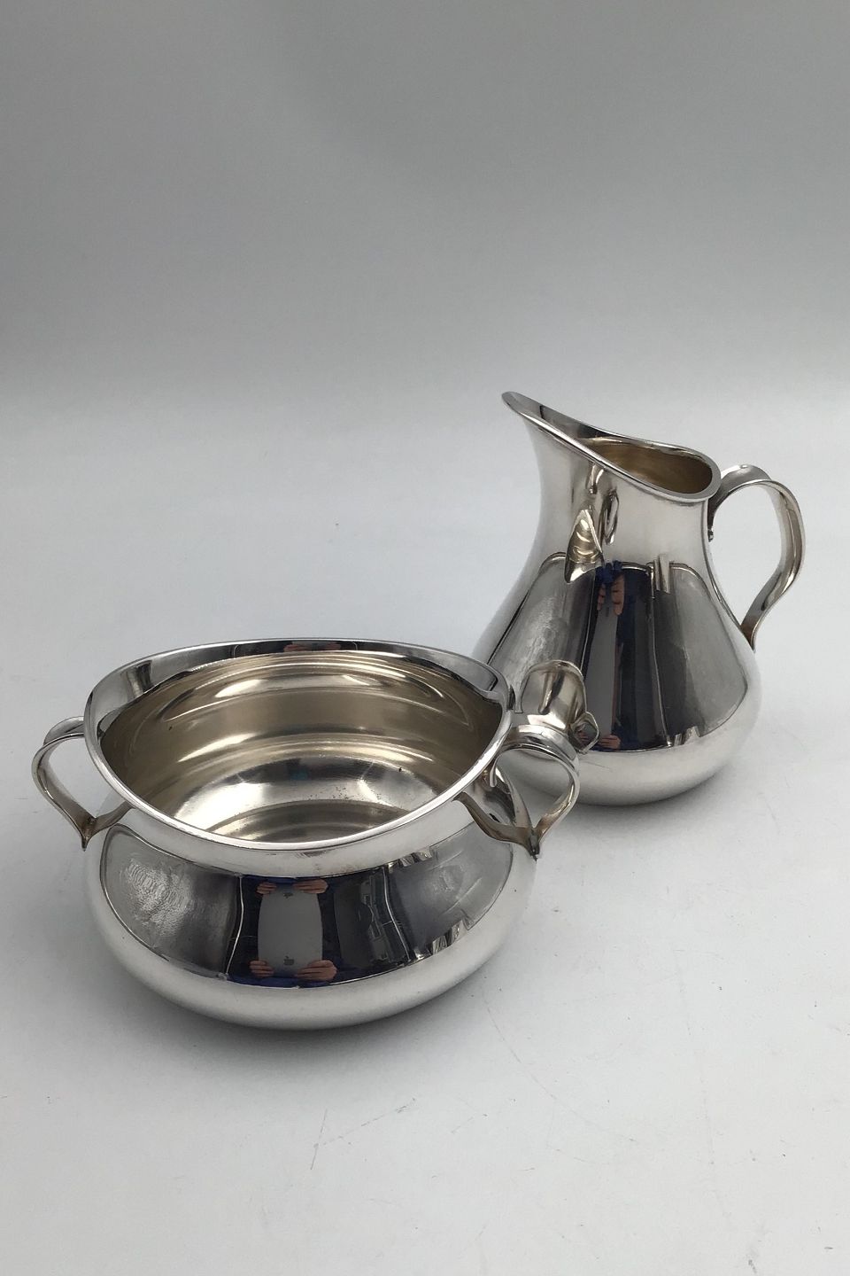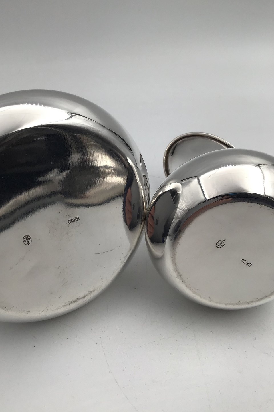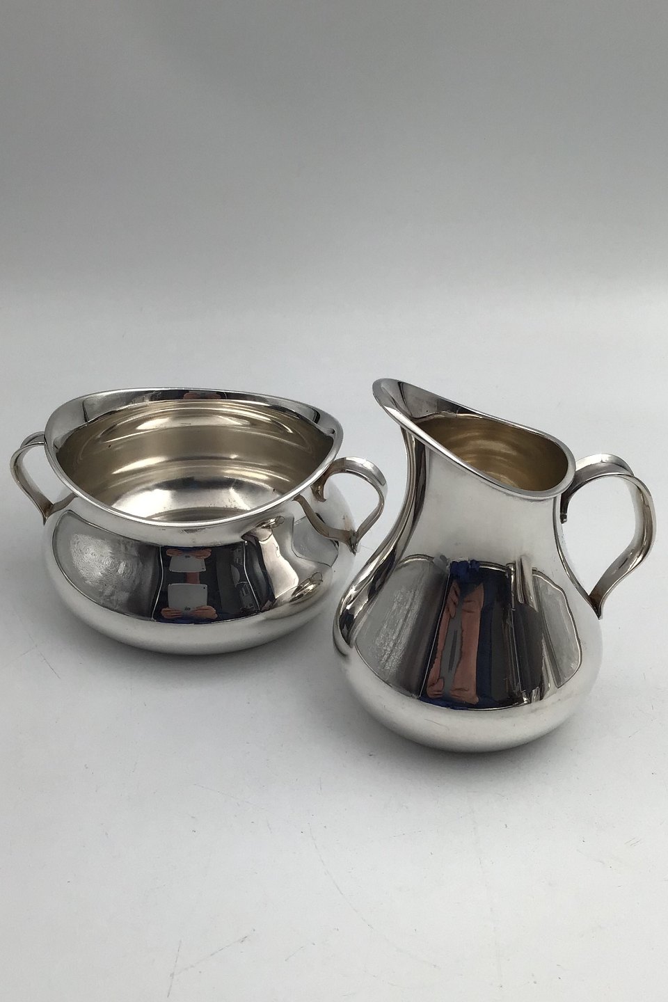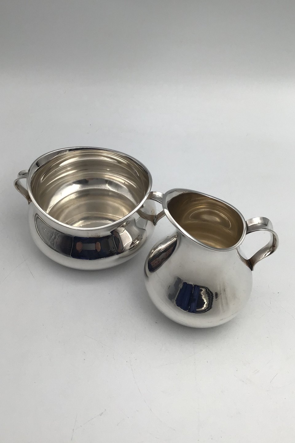 Cohr Sølv Moderne Sukker / Fløde sæt Måler Flødekande H 10.2 cm (4.01 inch) Sukkerskål H 5.8 cm (2.28 inch) Samlet vægt 300 gr. (10.58 oz)