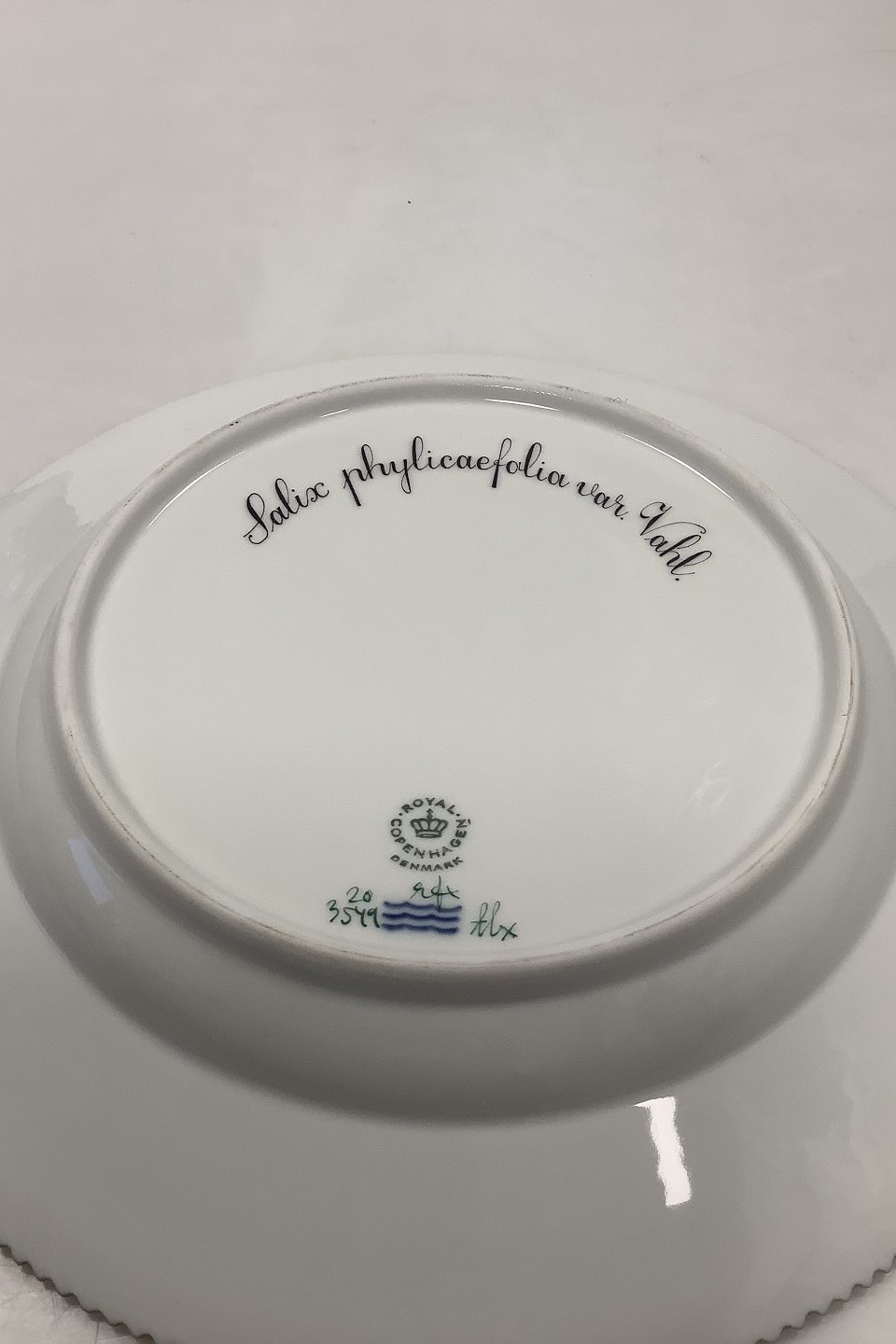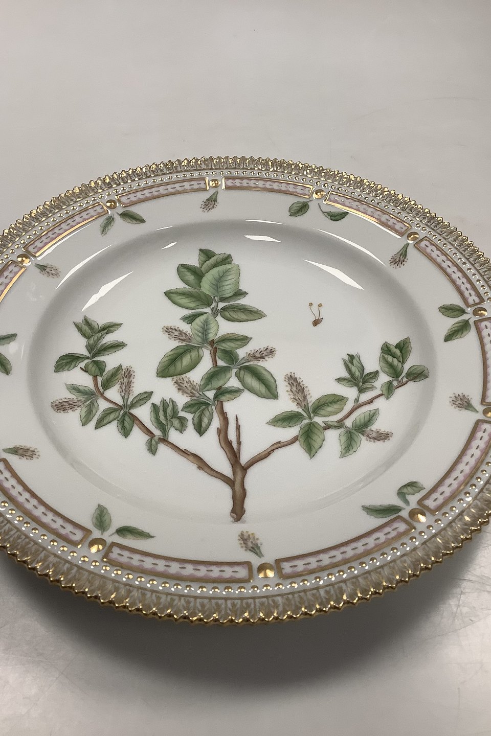 Royal Copenhagen Flora Danica Spisetallerken No. 624 ( 20 / 3549 ) Måler Diam 26 cm. (10.23 inch) 1. Sortering. Latinsk Navn: Salix plylicaefolia var Vahl