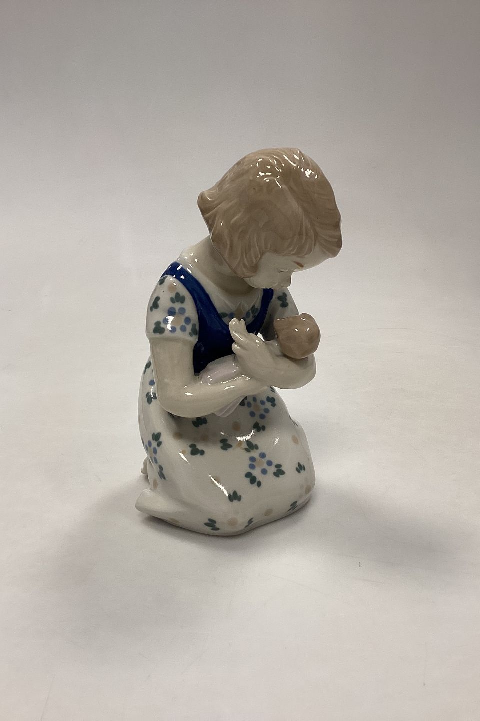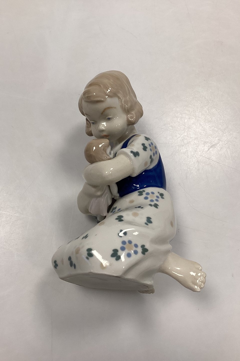 Gräfenthal GDR Figur af Pige med Dukke. Måler 17 cm / 6.7 in.