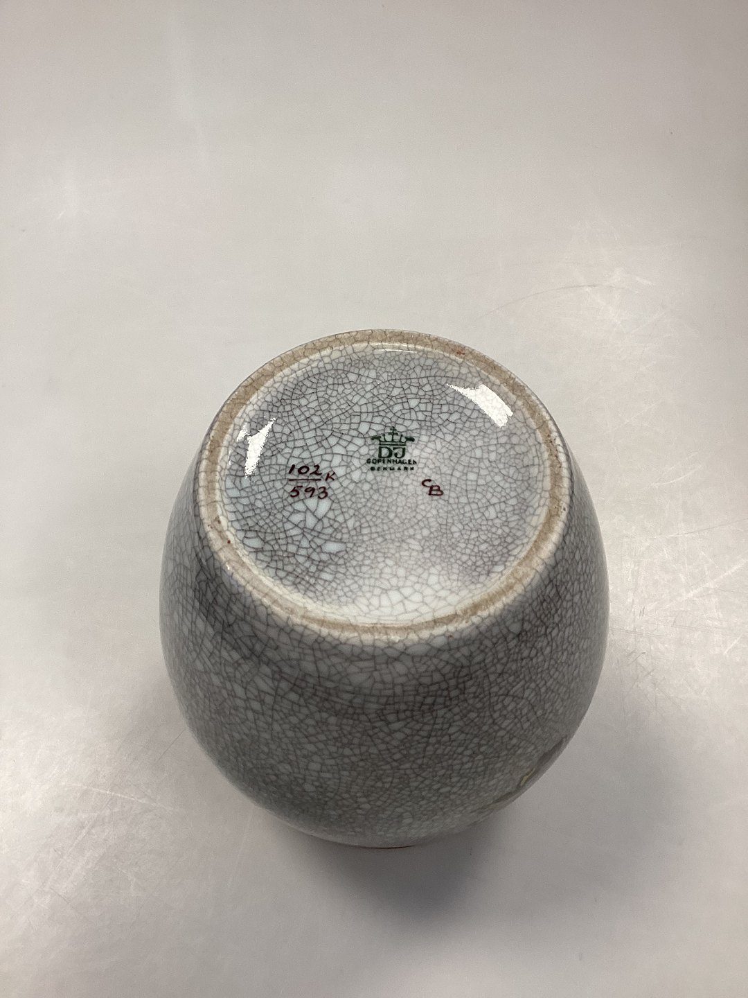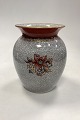 Dahl Jensen Cracked Glaze Vase No. 102/593. Decoration in siena red, white and gold. Measures 20.5 cm / 8.08 in. in height.