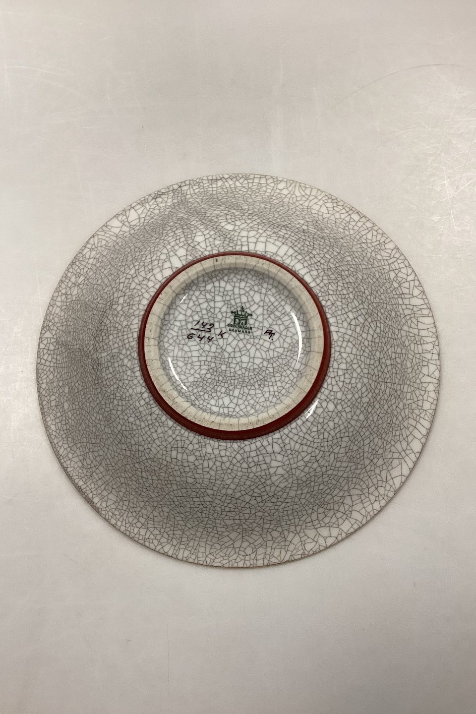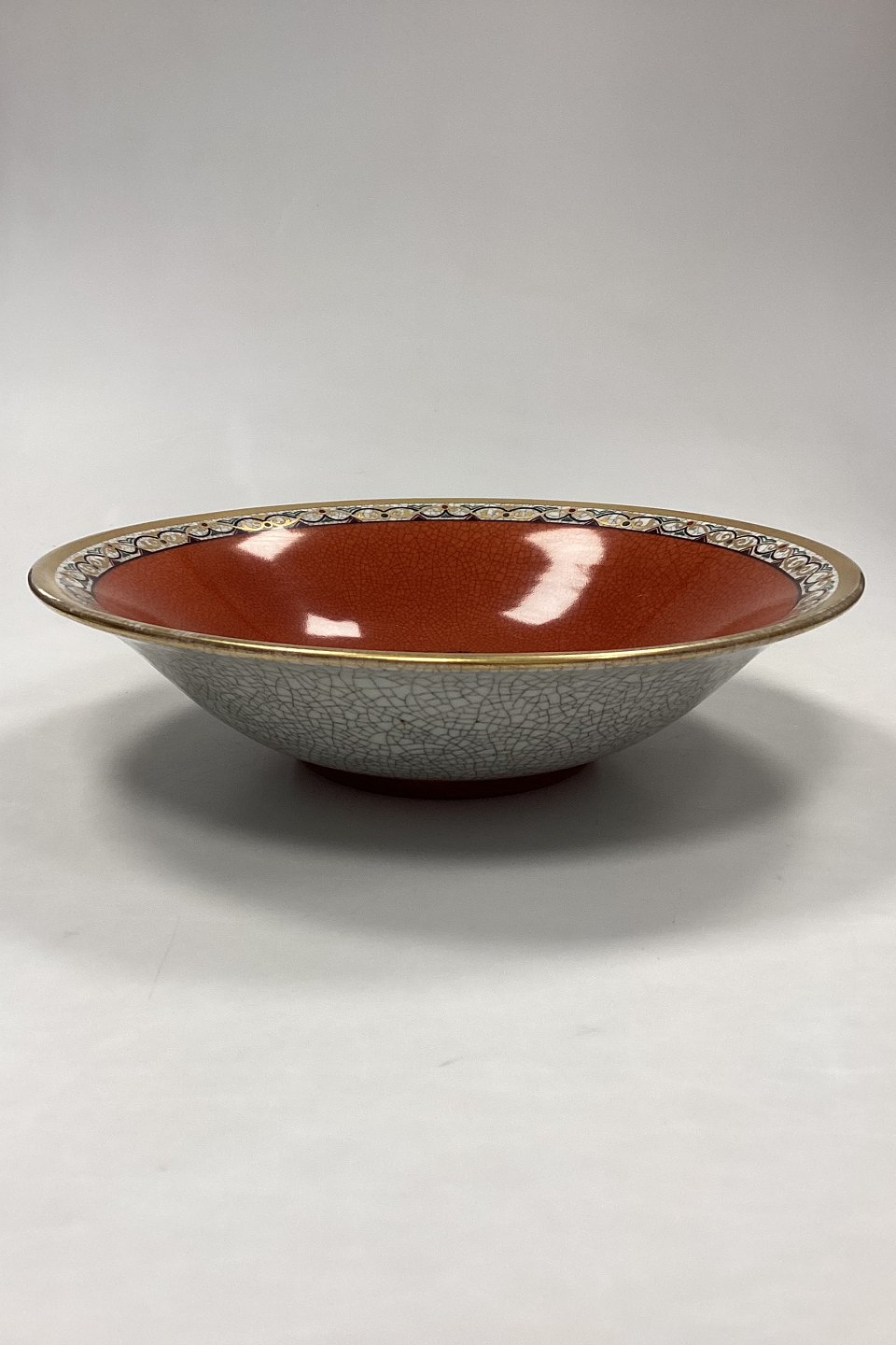 Dahl Jensen Craquelé Skål No. 142/644. Dekoration i siena rød, grøn, hvid og guld. Lettere slid på guldkanten.