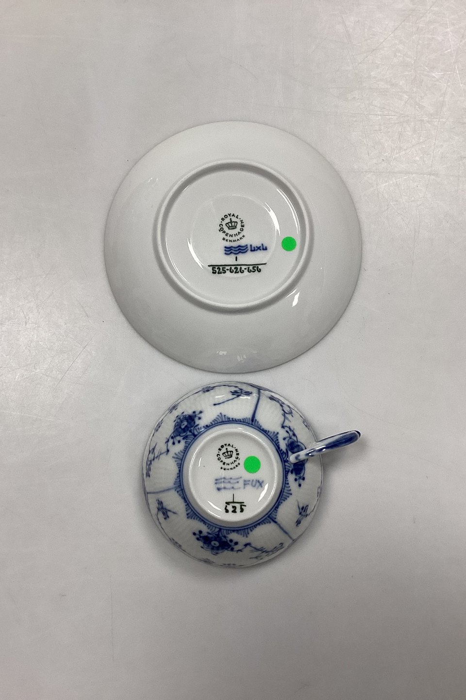 Royal Copenhagen Musselmalet Halvblonde Tekop og Underkop No. 525. Kop måler 4,5 x 10 cm / 1,77 in. x 3,93 in. 2. Sortering