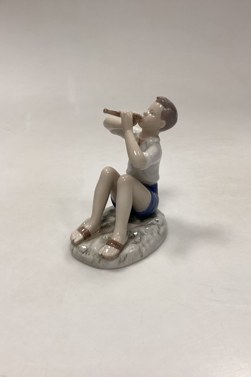Bing og Grøndahl Figur No. 2344 - Dreng der spiller fløjte. Designet af Vita Thymann. 1. Sortering. I fin stand. Måler 15 cm / 5,90 in.
