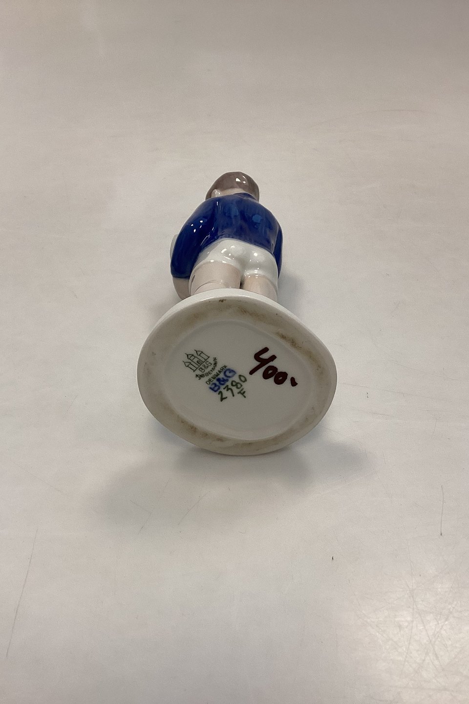 Bing and Grondahl Figurine Boy with Sailboat No. 2380. Designed by Claire Weiss. Measures 18 cm / 7.08 in. 1st Quality