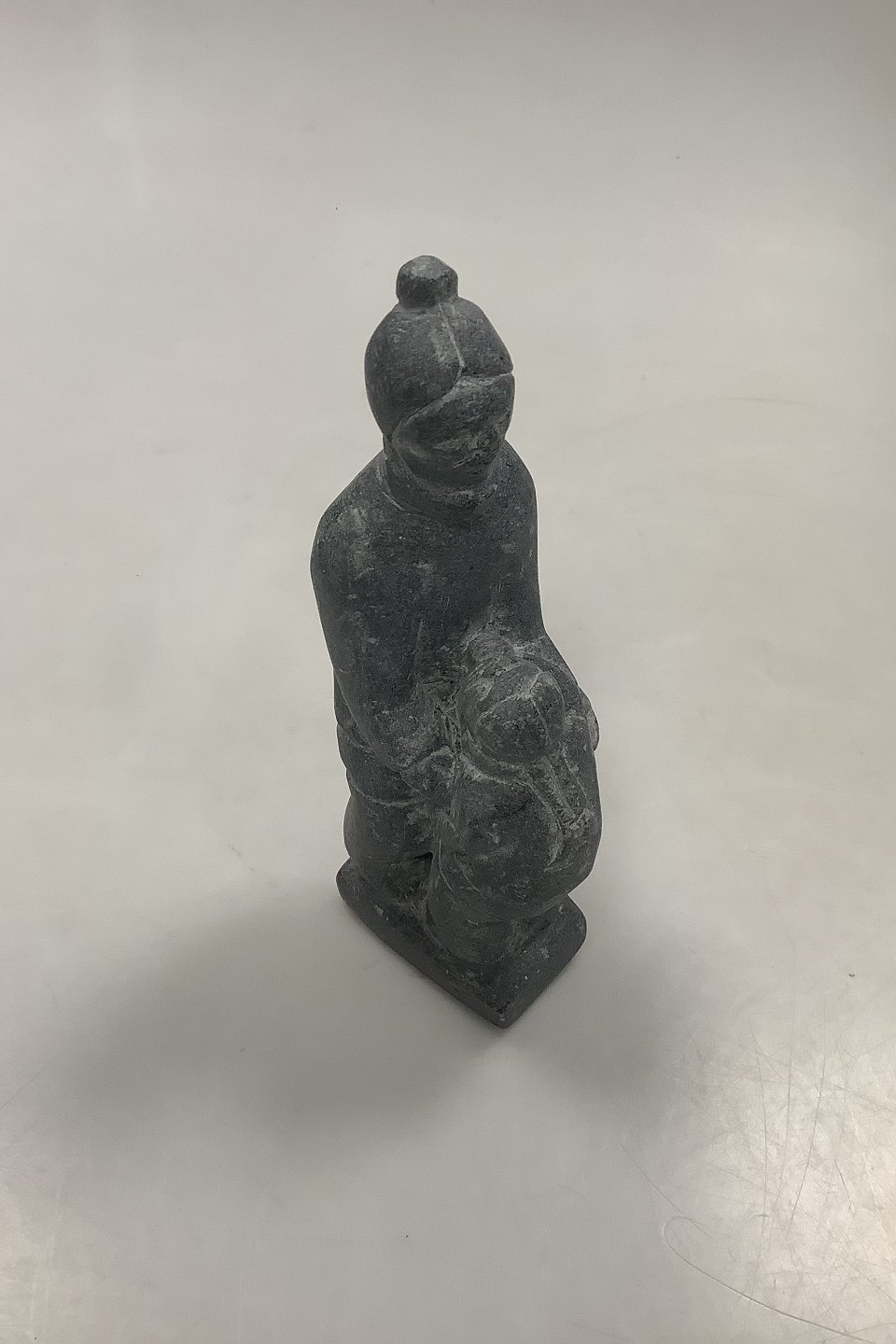 Grønlandsk Fedtstensfigur af Inuit Kvinde og barn