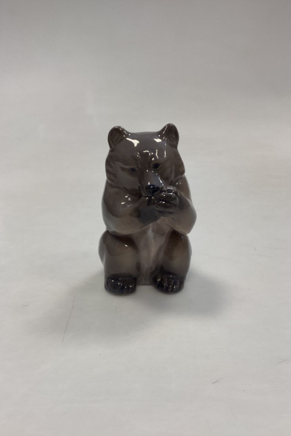 Royal Copenhagen Figur af Bjørneunge No. 3014. Designet af Knud Kyhn. Måler 9 cm / 3,54 in. Grå nuancer.