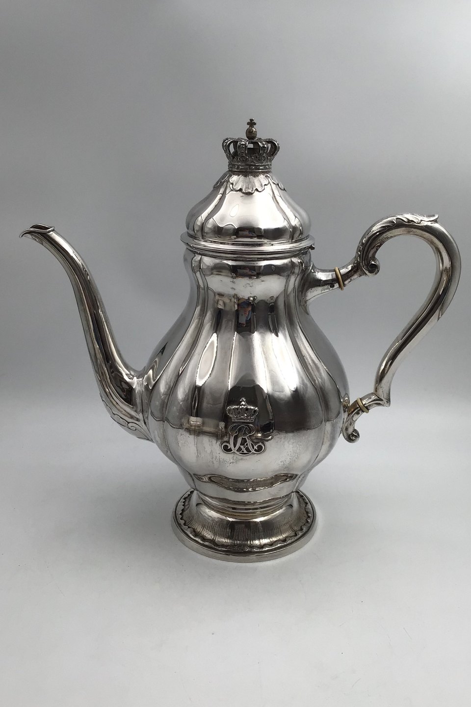 A. Michelsen Sterling Silver Coffee Pot (1934) Measures H 29 cm (11.41 inch) Weight 1040 gr (36.68 oz ) Monogram of Danish King Christian X