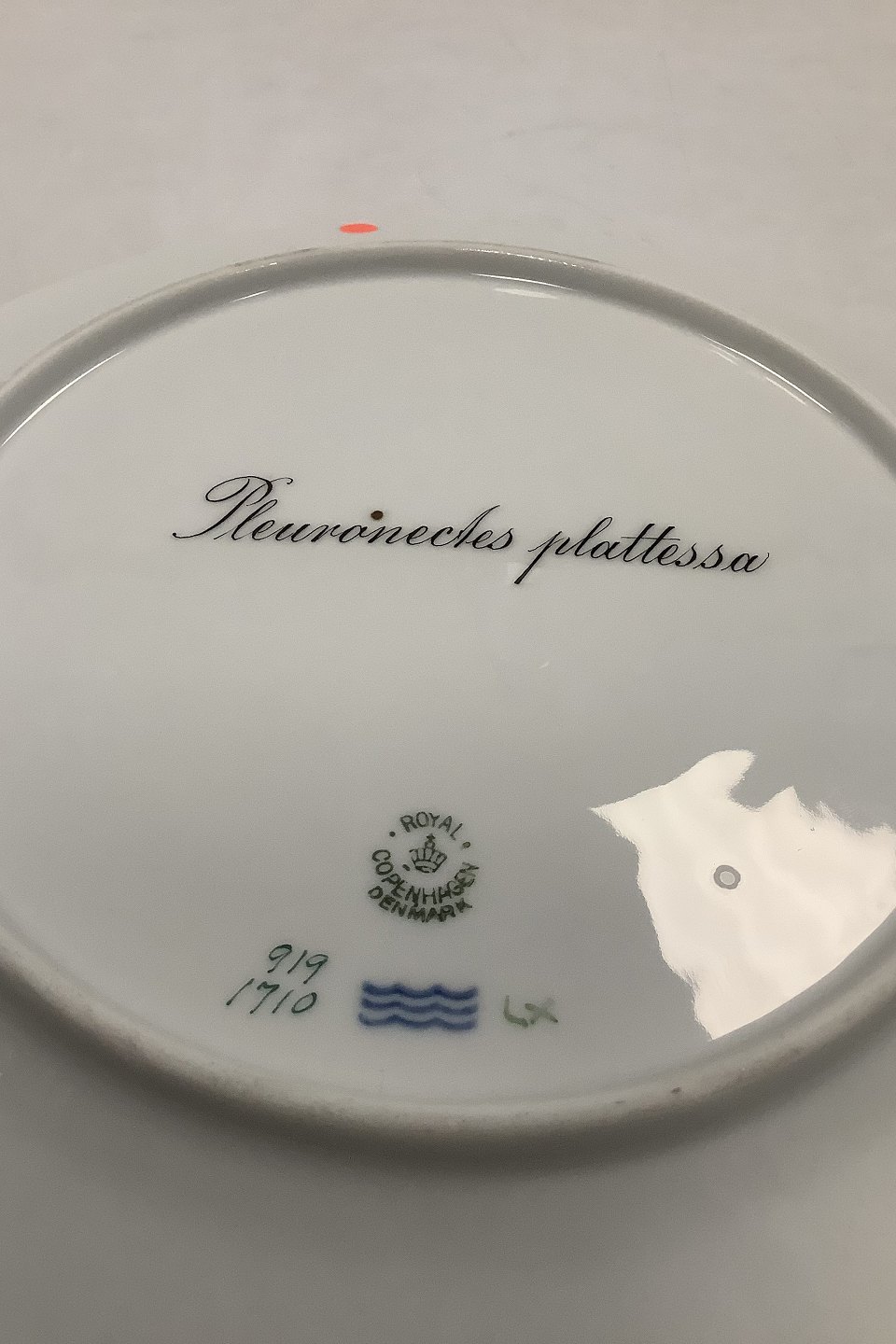 Royal Copenhagen Grøn Fisketallerken No 919/1710 med Pleuronectes plattessa