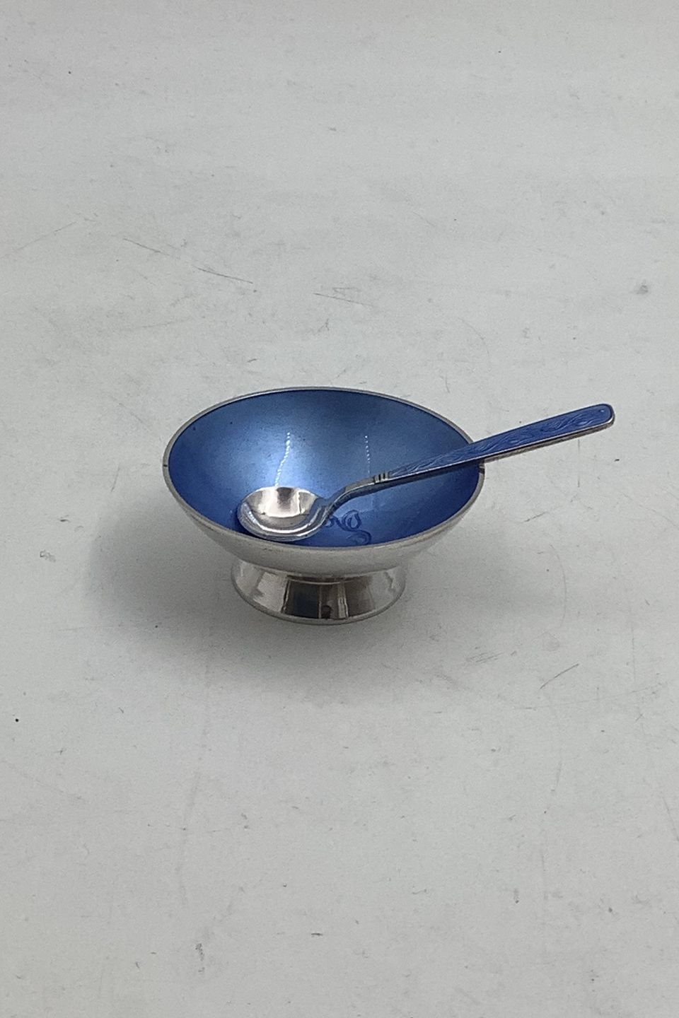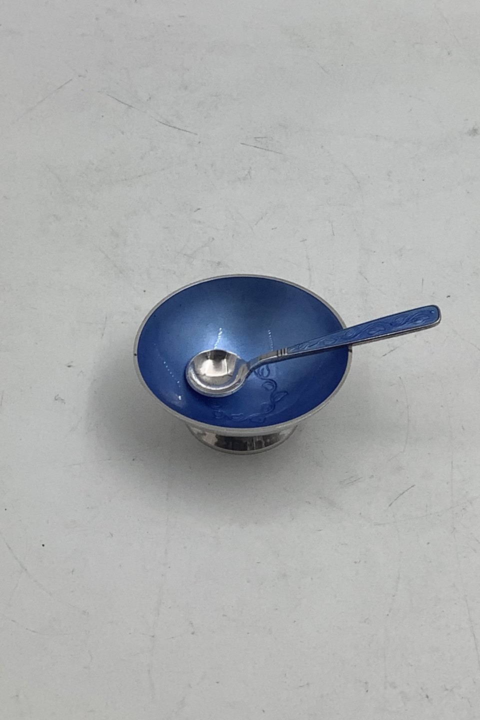 Volmer Bahner Sterling Sølv Saltkar med Blå emalje og ske