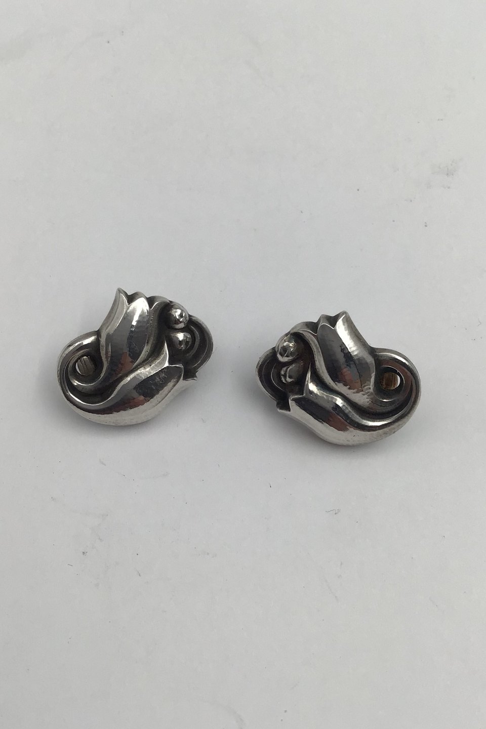 Georg Jensen Sterling Silver Earrings (Clips) No. 100 (1930-1945) Measures 2 cm (0.78 inch) Combined Weight 7 gr. (0.24 oz)