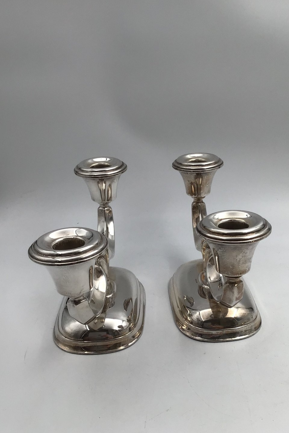 David Andersen Sølv To-armede Lysestager (2) (1888-1925) Måler H 12.5 cm (4.92 inch) 24 cm x 8.5 cm (9.44 inch x 3.34 inch) Samlet vægt (udfyldt) 975 gr (34.39 oz)