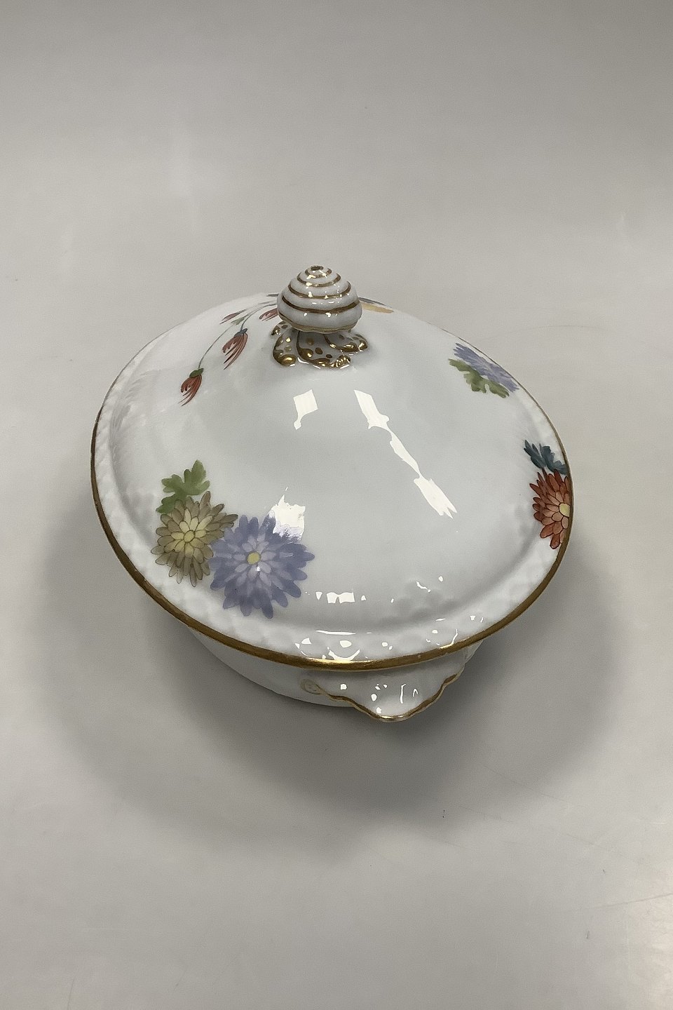 Royal Copenhagen Stel No 93 Hvid Halvblonde m. Blomster og Guldkant Lågfad