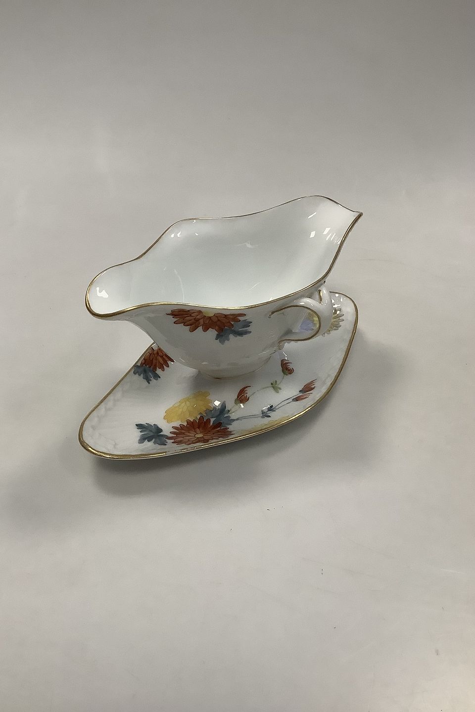 Royal Copenhagen No 93 White Half Laced w. Flowers and Gold Gravy Boat