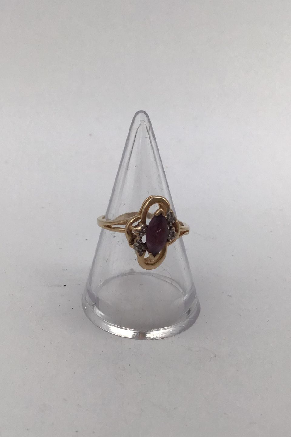 14K Guldring med Ametyst og Diamant Måler Ring Str. 52 (US 6) Vægt 2.8 gr. (0.10 oz)