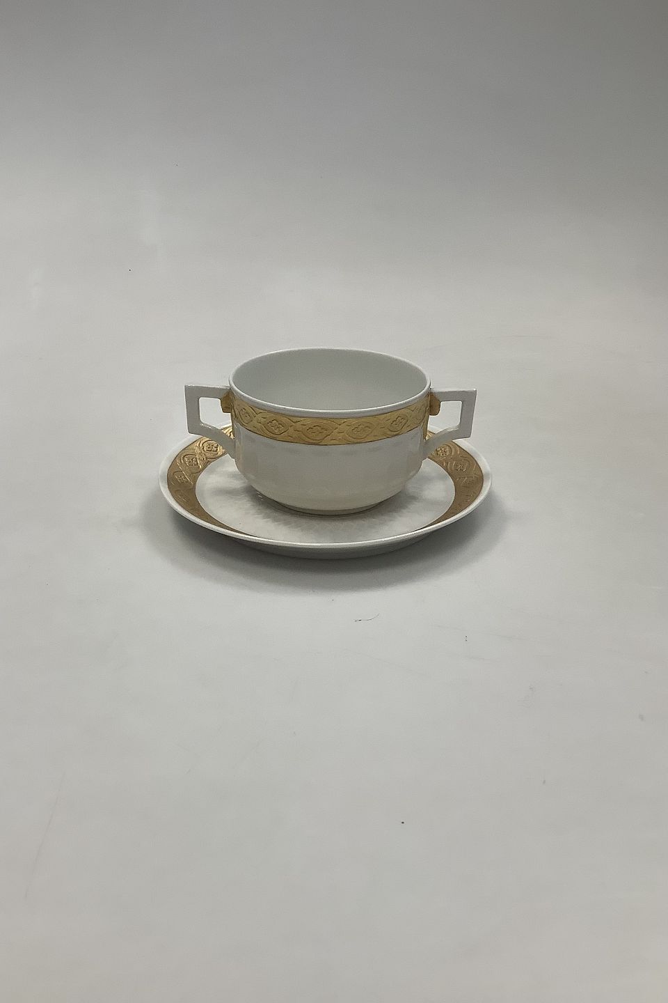 Royal Copenhagen Gold Fan Bouillon Cup with Saucer No. 11552. 22 cl. 5.5 cm H. 8.2 cm dia. 1st Quality, in great condition.