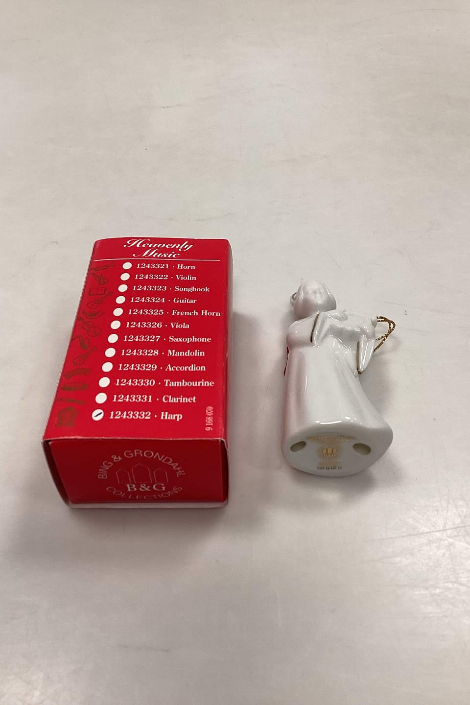 Bing og Grøndahl Figur Heavenly Music Engel - Harpe No. 12. Juleornament i blanc de chine porcelæn med guld og snor til ophæng. Måler 9,5 cm / 3,74 in.