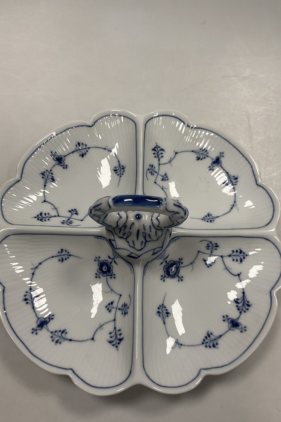 Royal Copenhagen Musselmalet Riflet Cabaretfad med Fire Skåle No. 2130. Måler 29 cm / 11,41 in.