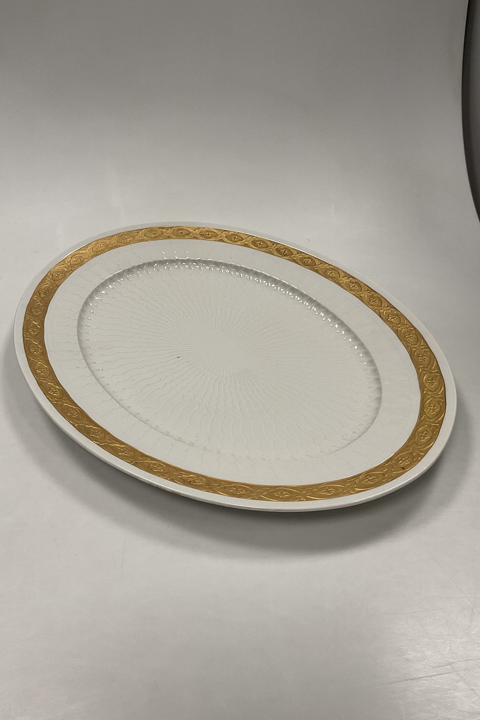 Royal Copenhagen Guld Vifte Stort Ovalt Serverings fad No 11510. 49 x 37 cm (19 19/64 inch x 14 9/16 inch)