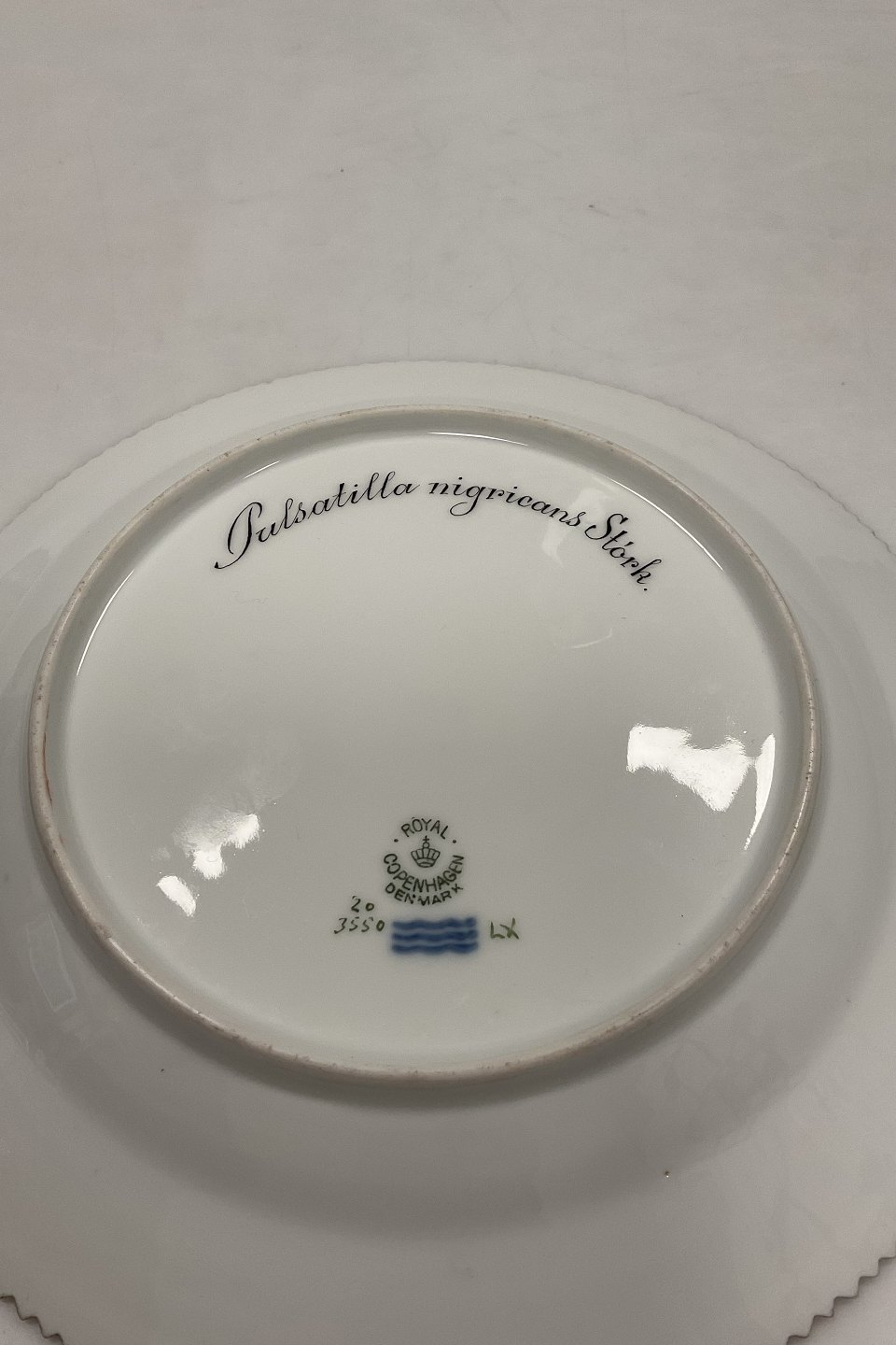 Royal Copenhagen Flora Danica Lunch Plate No 20/3550. Measures 22 cm / 8 21/32 in. 1st Quality. Latin name: Pulsatilla nigricans Stork.
