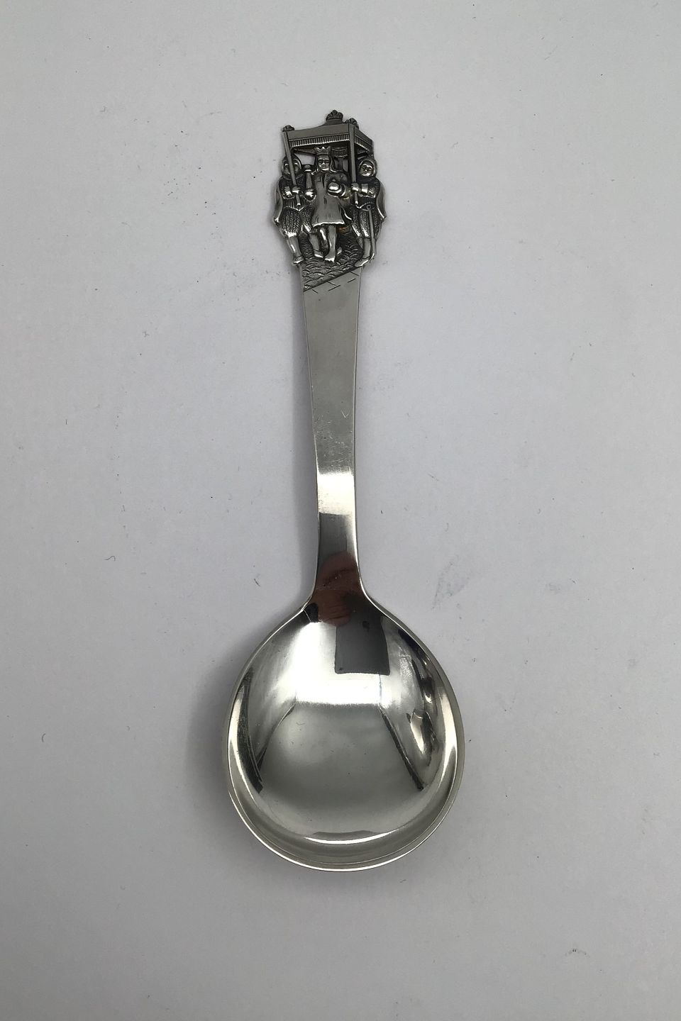 H.C. Andersen Eventyr Barneske i Sølv. Kejserens Nye Klæder. Måler 14.5 cm (5.70 inch) Rundt Laf
