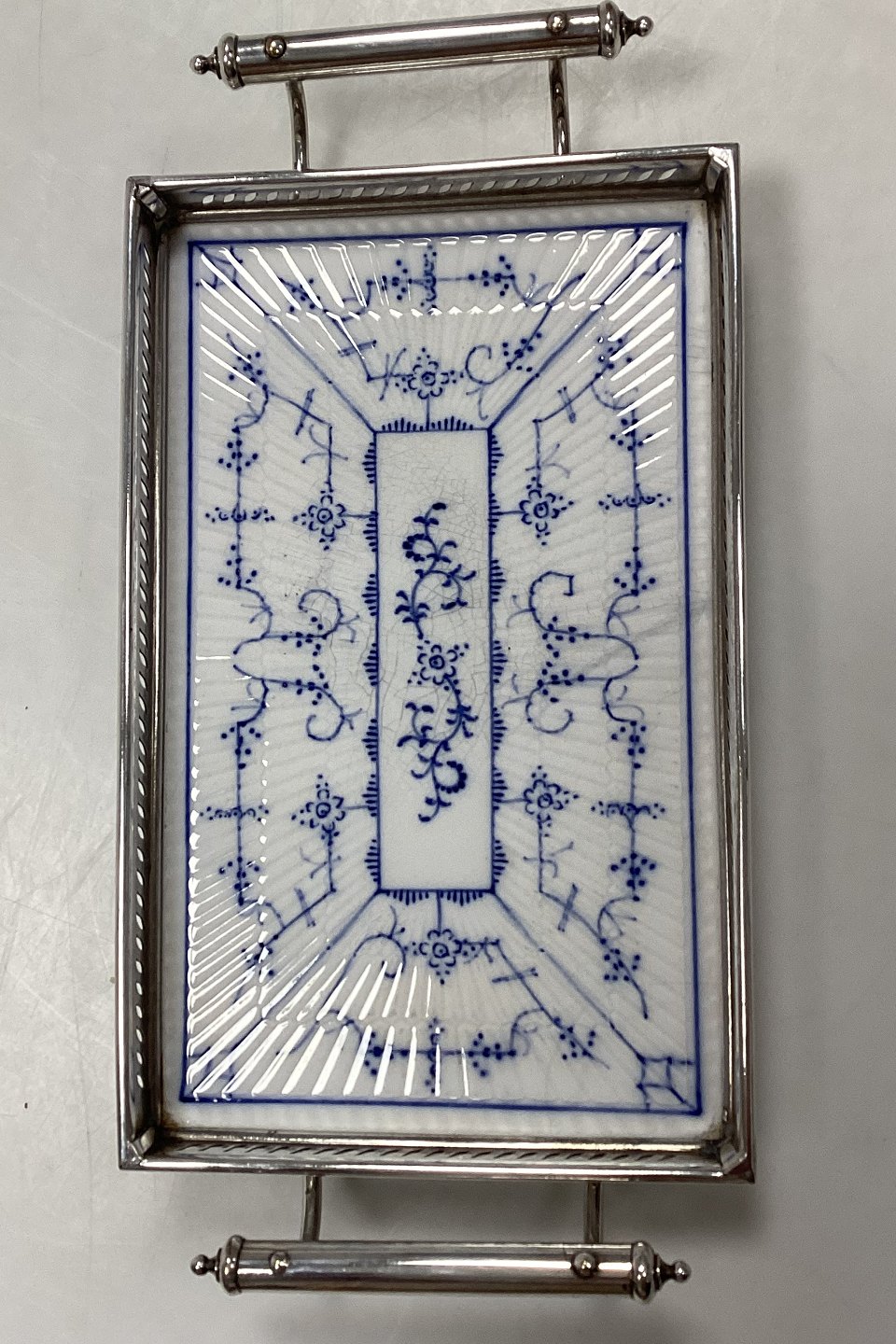 Villeroy and Boch Blue Fluted Serving Tray, with metal frame and handle