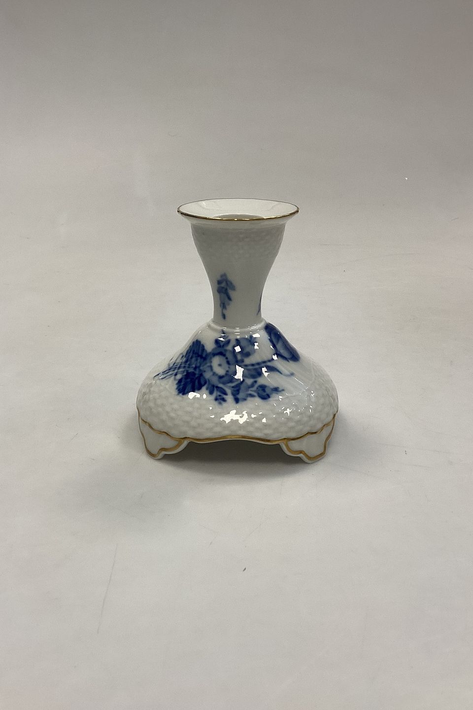 Royal Copenhagen Blå Blomst Svejfet med Guld Lysestage No. 1711. Måler 10,5 cm / 4,13 in.