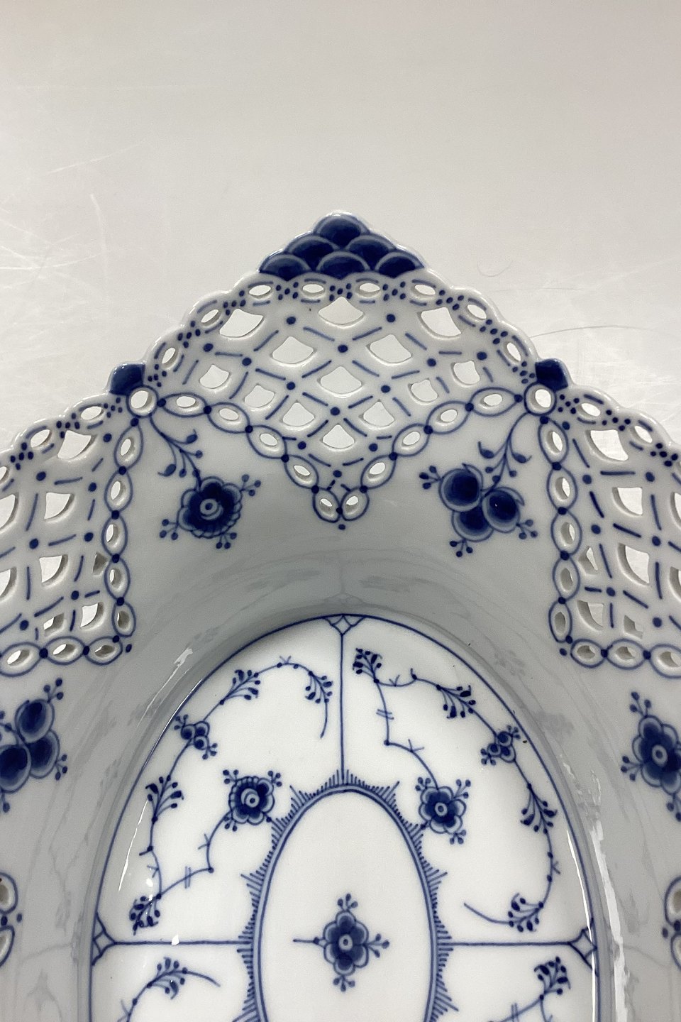 Royal Copenhagen Musselmalet Helblonde Frugtkurv/Oval Skål No. 1059. Modellør Emil Larsen, november 1892.