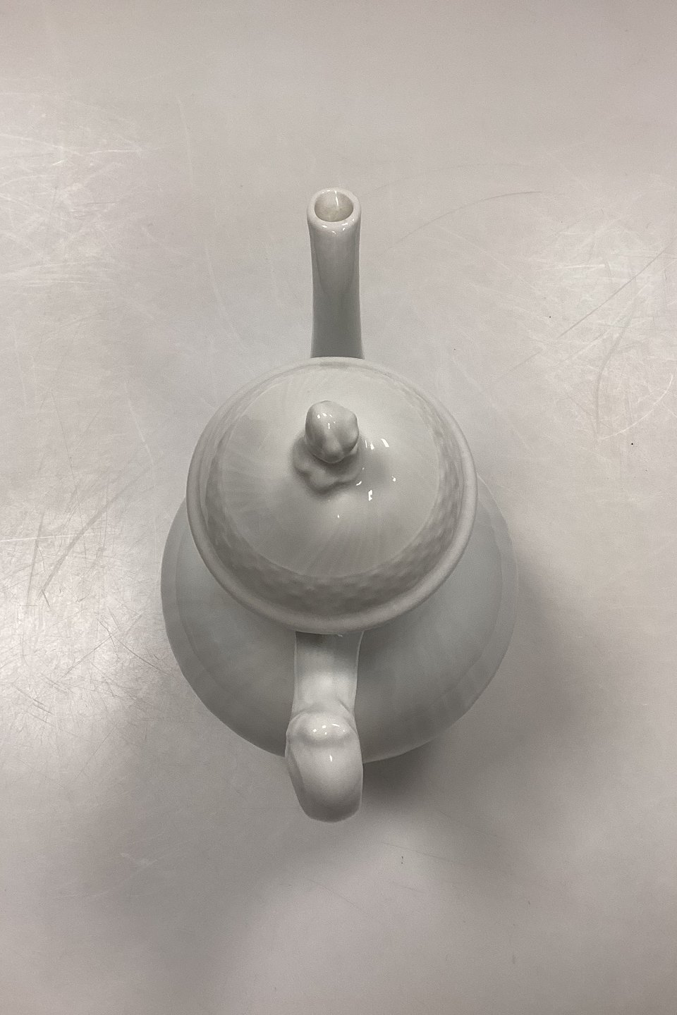 Royal Copenhagen Josephine, Hvid Svejfet Kaffekande No. 128 med låg No. 127. 1. Sortering.