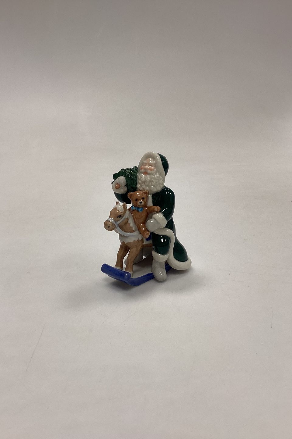 Royal Copenhagen Figur Årets Julemand 2005 No. 771. Julemanden i grønt tøj på gyngehest. Designet af Sven Vestergaard.