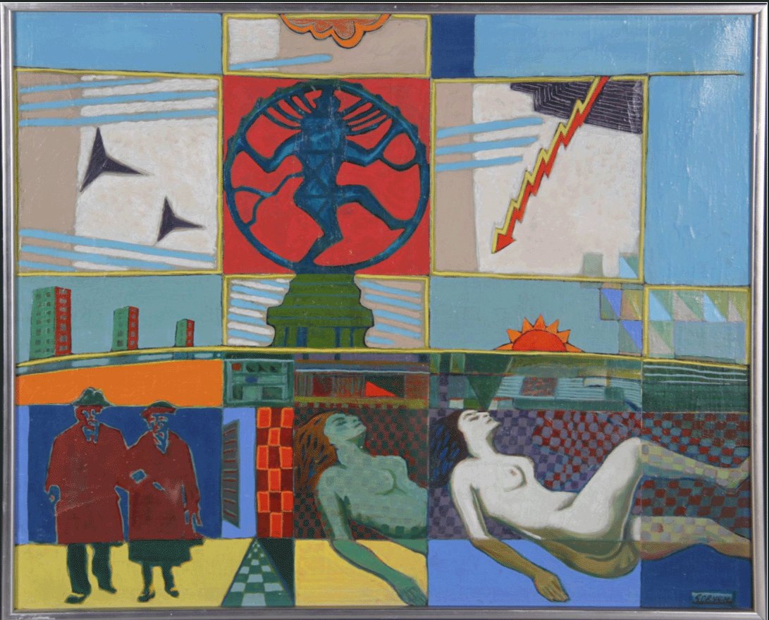 "Komposition med adskillige elementer"Olie maleri på lærred.