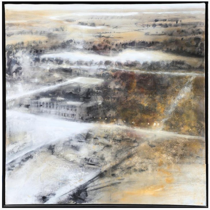 "Komposition" Olie maleri på lærred i sort svæve ramme.