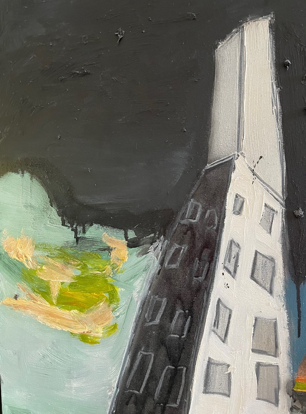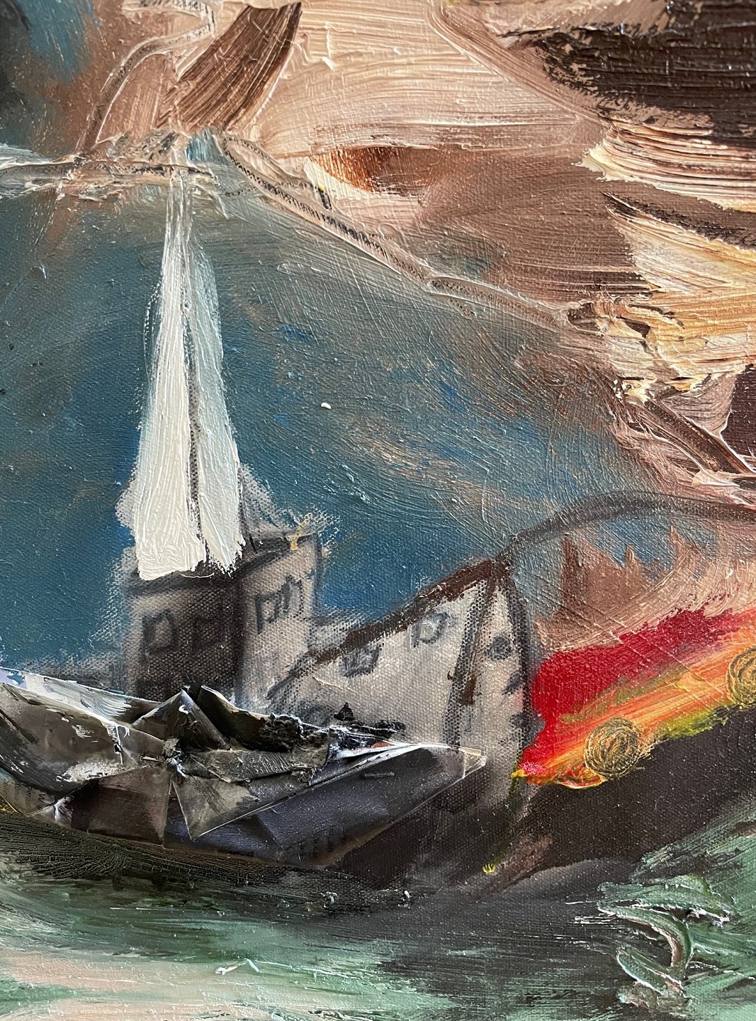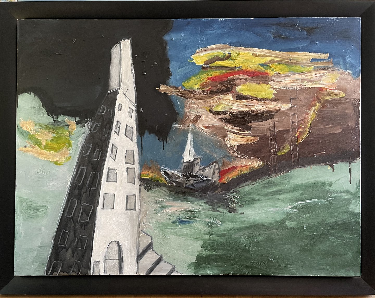 "Komposition" Her er et af kunstnerens allerbedste malerier. Maleriet er monteret i bred sort svæveramme.