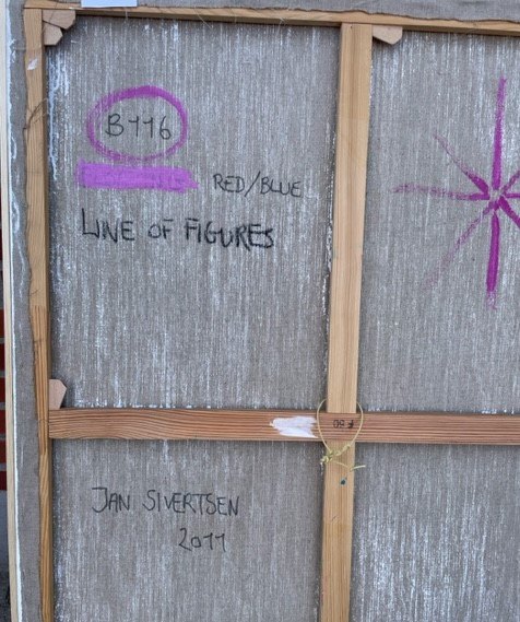 "Line of Figures red/blue" Oliemaleri i naturramme.