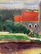 "Landskab med kirke" Motivet sikkert fra Thy.
