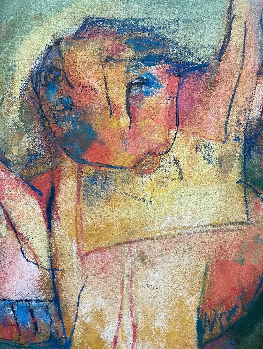 "Den glemte gud" Oliemaleri i fin smal guld ramme. Maleriet er købt hos Galleri Moderne i 1973.