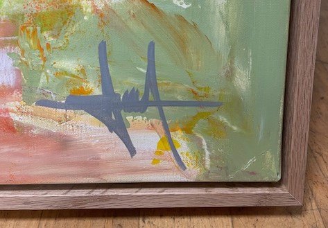 "Komposition" Akryl på lærred i massiv egetræs svæveramme fra bogø Design.