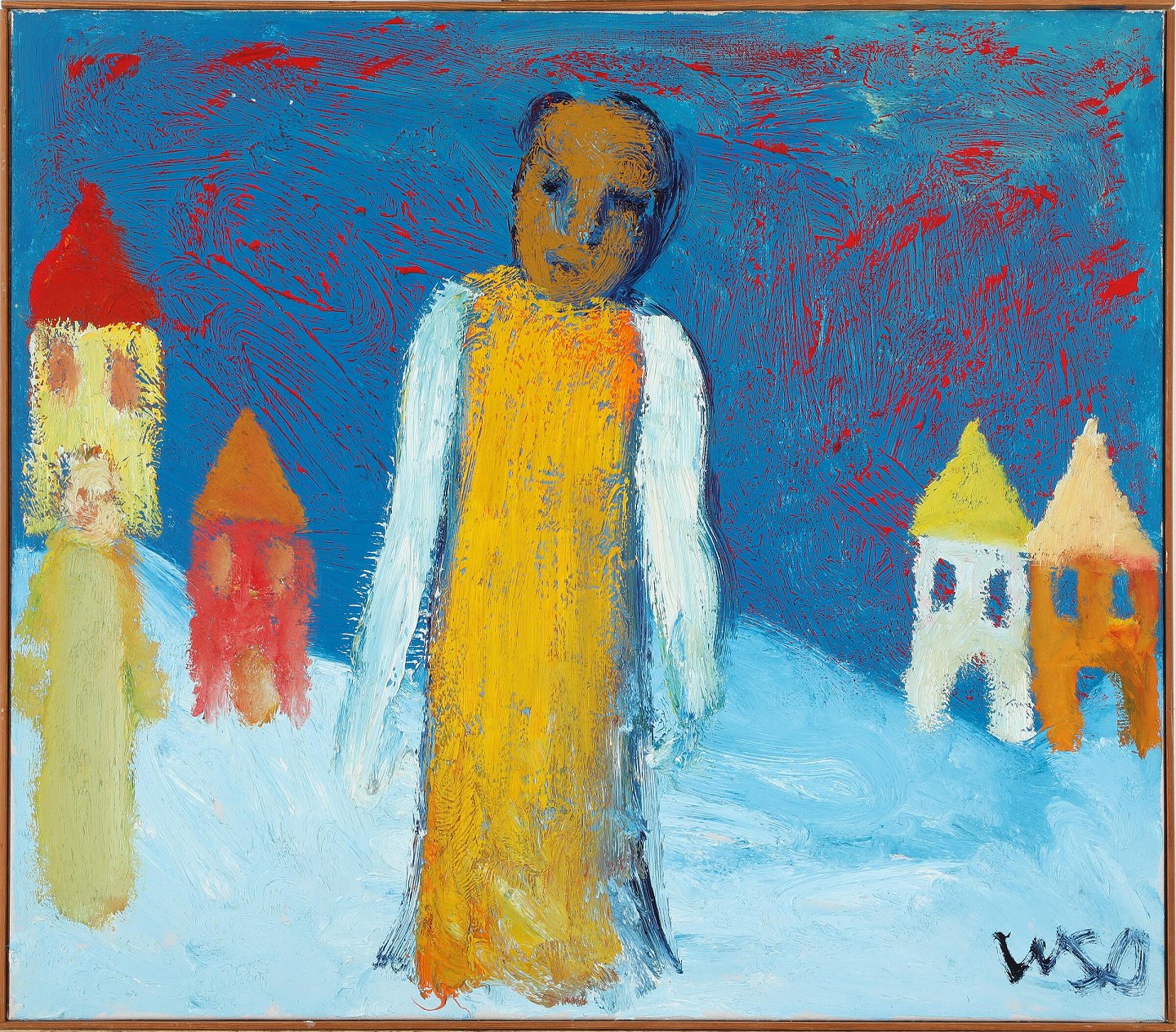 "Figurkomposition" Olie maleri på lærred. I naturramme.